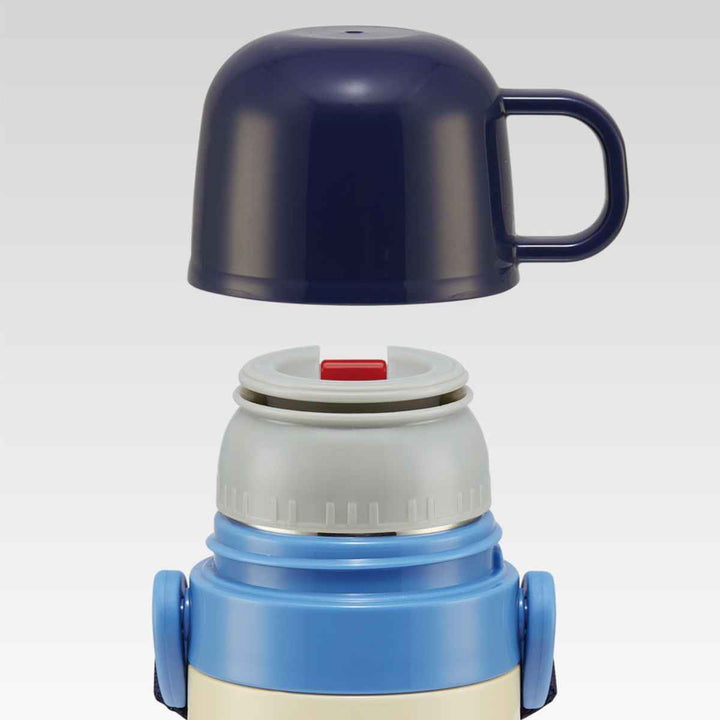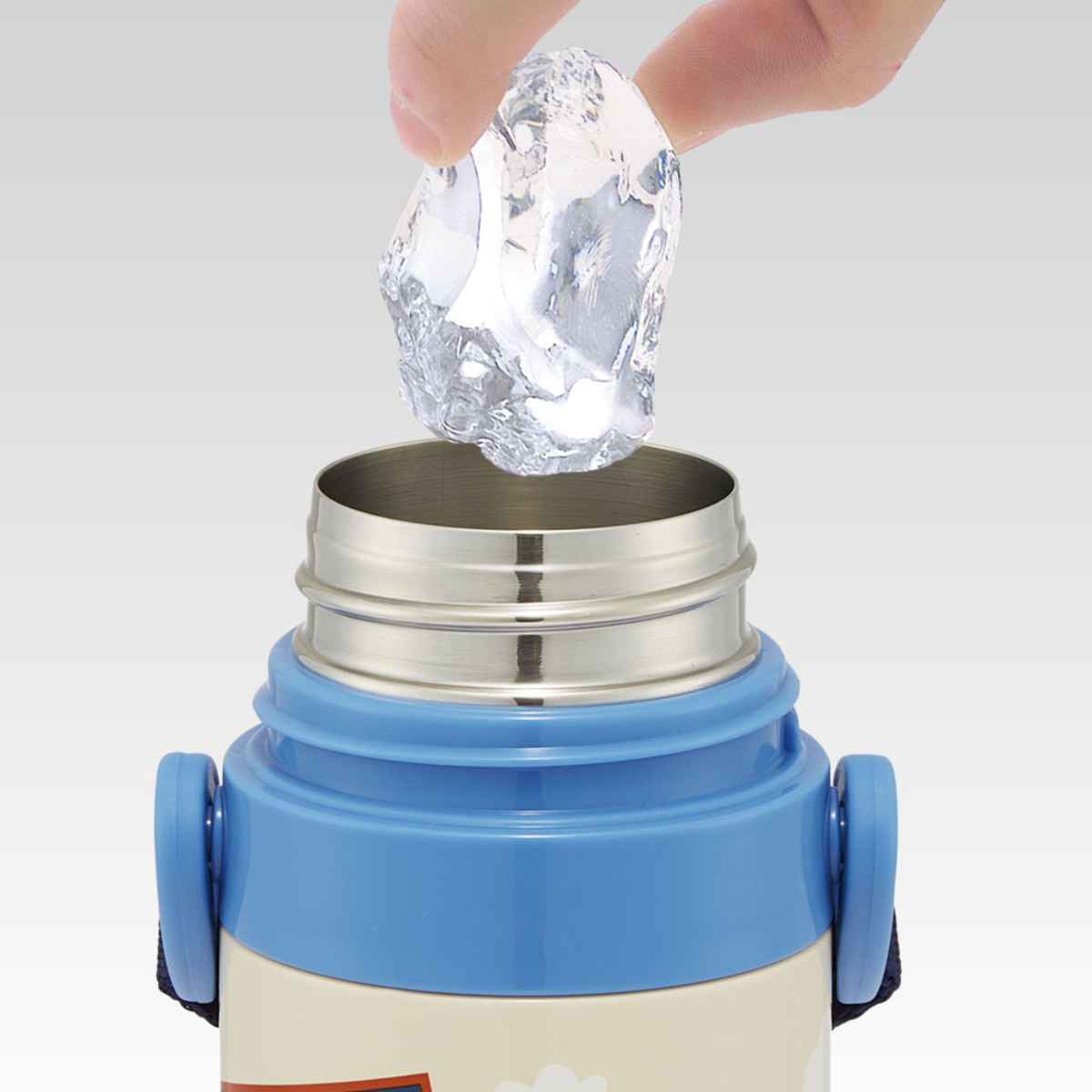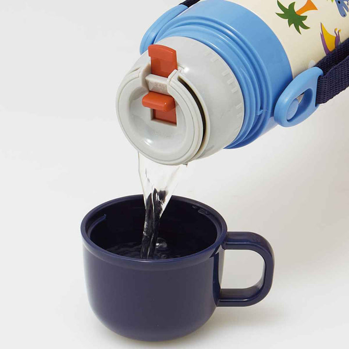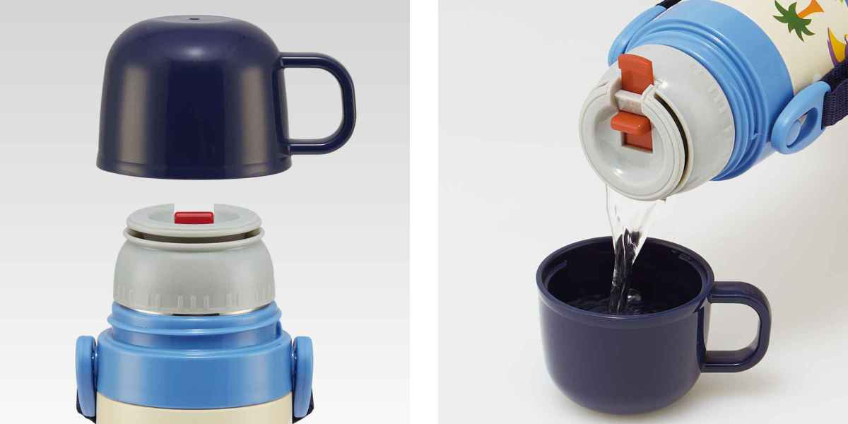 蓋と中栓を付けると、コップ飲みの水筒になります。温かい飲み物や冷たい飲み物にもご使用いただけます。