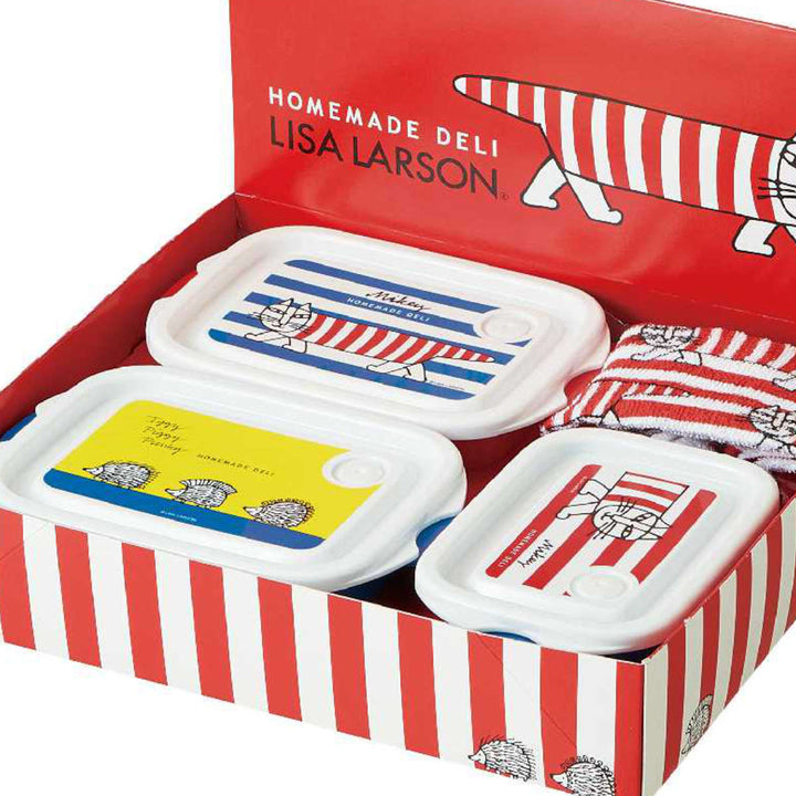 ランチボックスとしても使える保存容器とおしぼりのプチギフトセットです。ビビットなカラーとかわいいリサラーソンがキッチンを明るい雰囲気に。お弁当箱として使えば、ランチタイムをより楽しい時間にしてくれます。