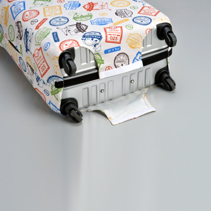 ストレッチ素材で装着しやすく、スーツケースの汚れや傷付き防止用の保護カバーです。保管時のホコリ除けとしてもお使いいただけます。空港での荷物の取り違いを防ぎます。