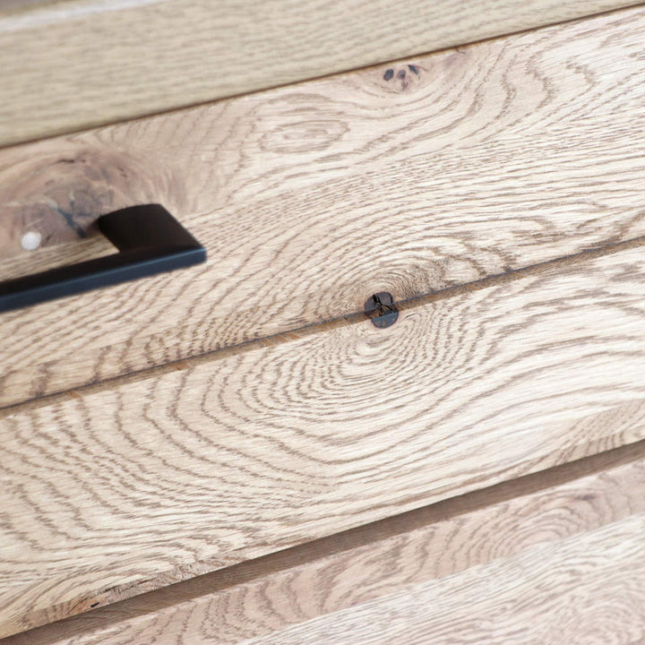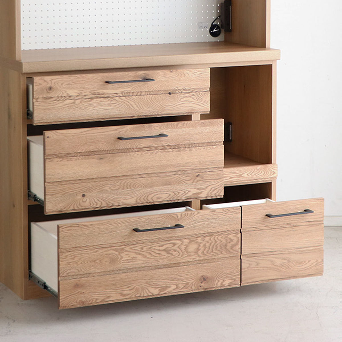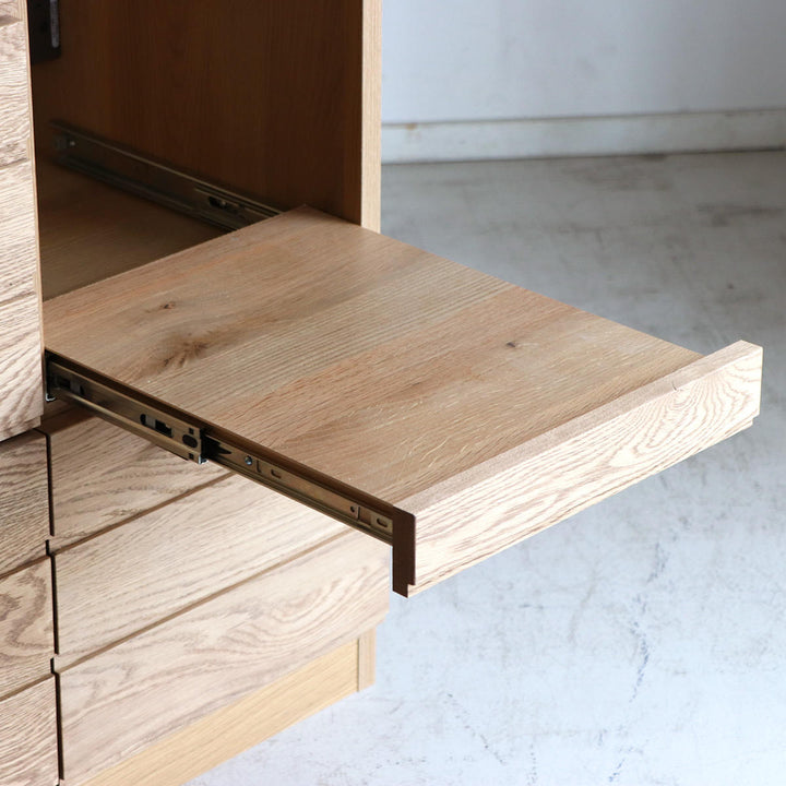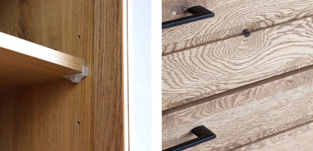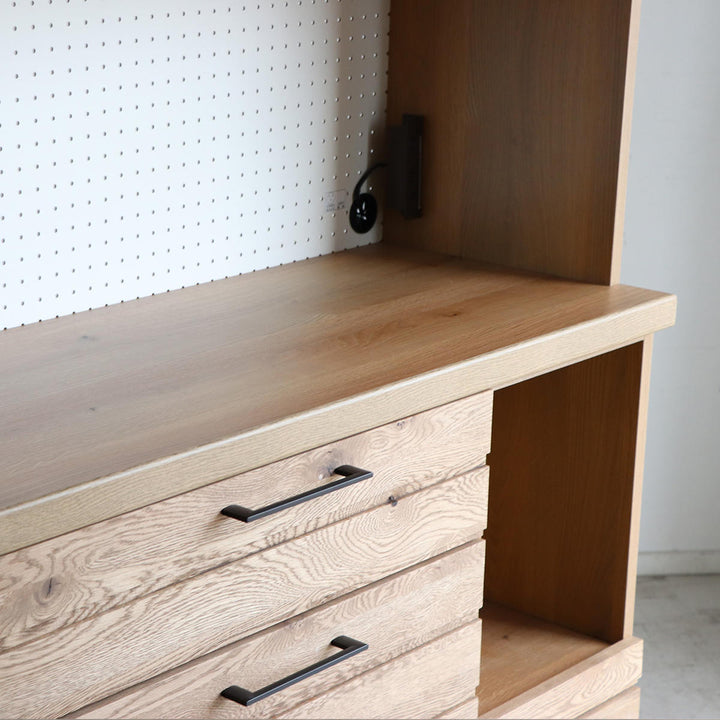 前板にホワイトオーク材を使用 前板にはホワイトオーク材を使用しています。明るくはっきりとした木目が美しいのが特徴で、表情豊かな木目がお部屋に温もりを与えてくれます。 |