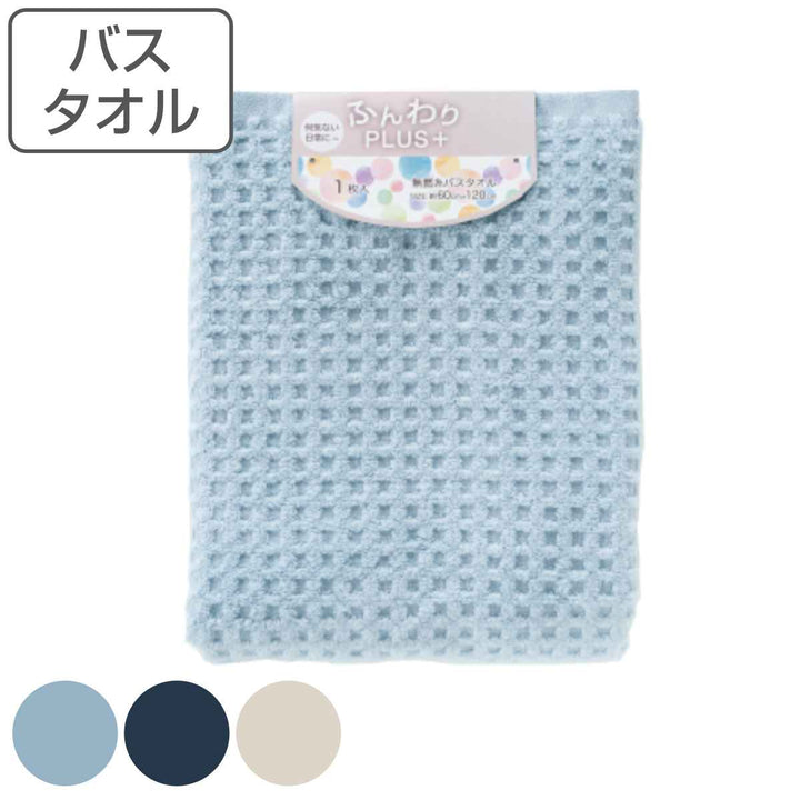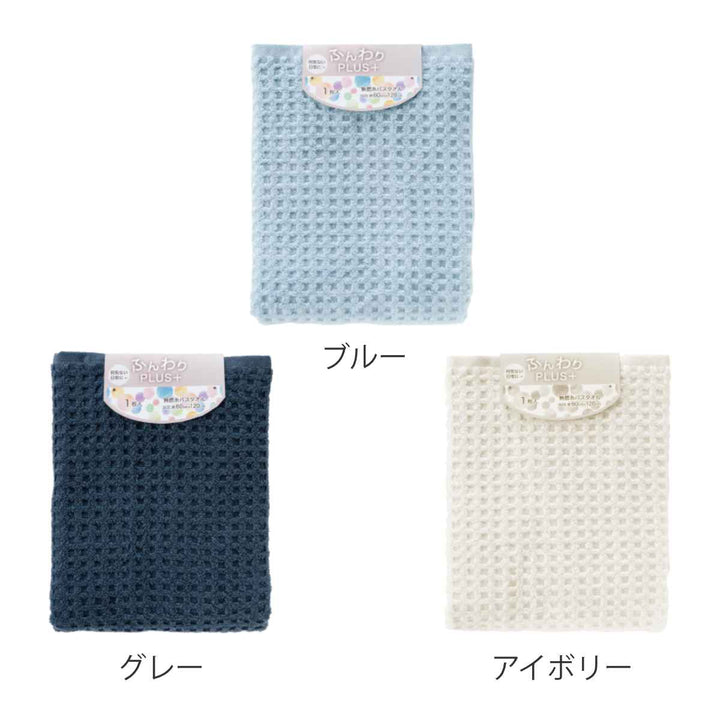 ワッフル調のふんわり無撚糸バスタオル 60×120cm