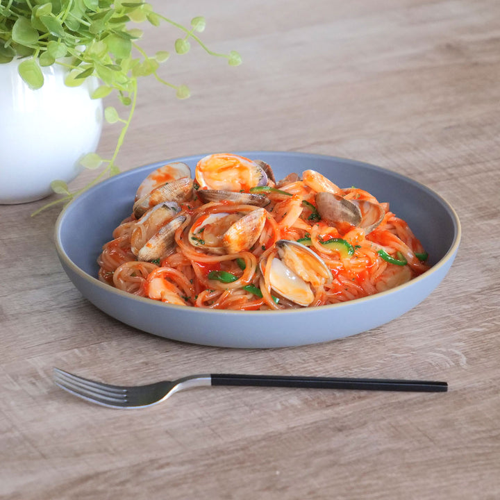 お洒落なプラスチック製のプレートです。一人分のパスタやオムライスの盛り付けにぴったりな大きさです。毎日の食事はもちろん、ホームパーティーなどのおもてなしにもピッタリです。