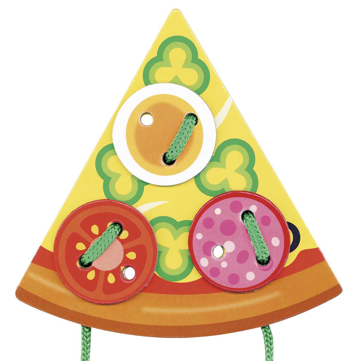 ピザにハムやトマトをトッピングしてみましょう。パーツを組み合わせて、ストーリーを作ったり、ごっこ遊びに使ったり遊び方も広がります。パーツをつなげていき、穴の数が違うものや形の違うものをつなげることで、自然に集中力が身につきます。