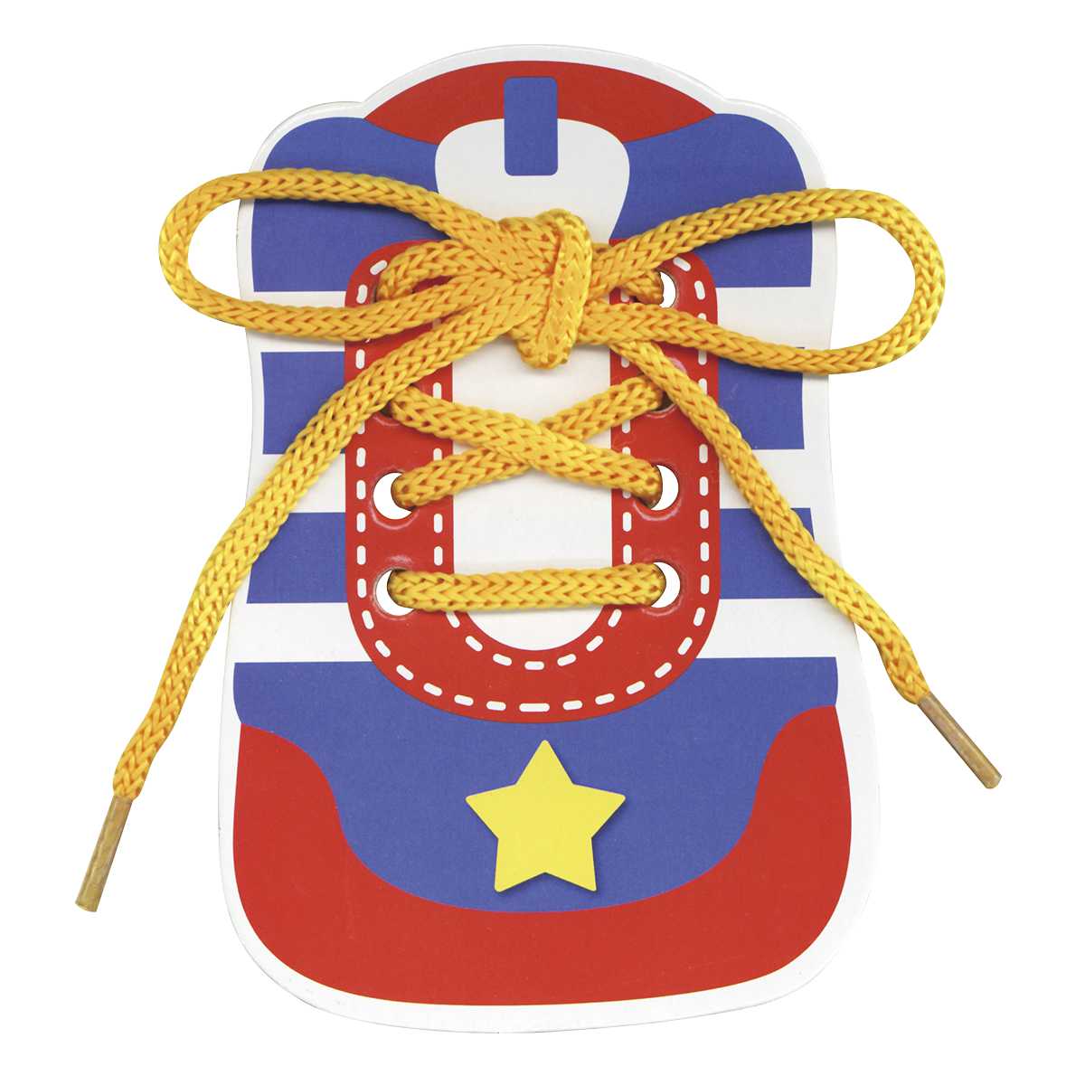 スニーカーでひもむすびの練習ができます。ちょうむすびや靴ひもとおしのおけいこにも最適です。