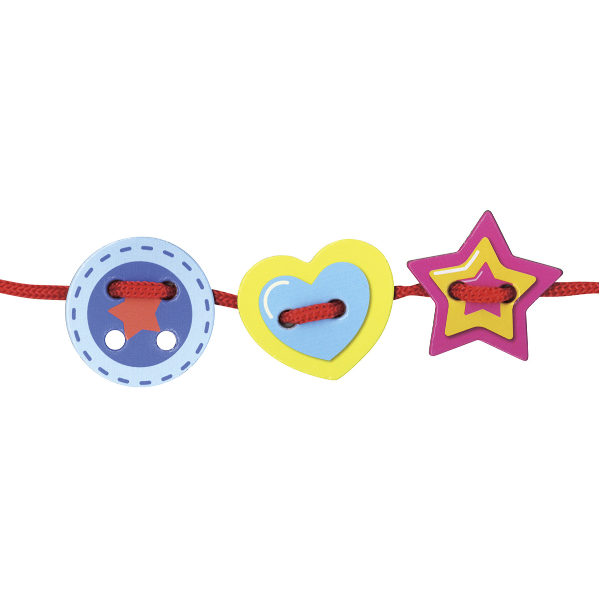 ●できるだけ多くの穴にひもを通したり、パーツを組み合せて通したりすることで、脳の発達を促します。