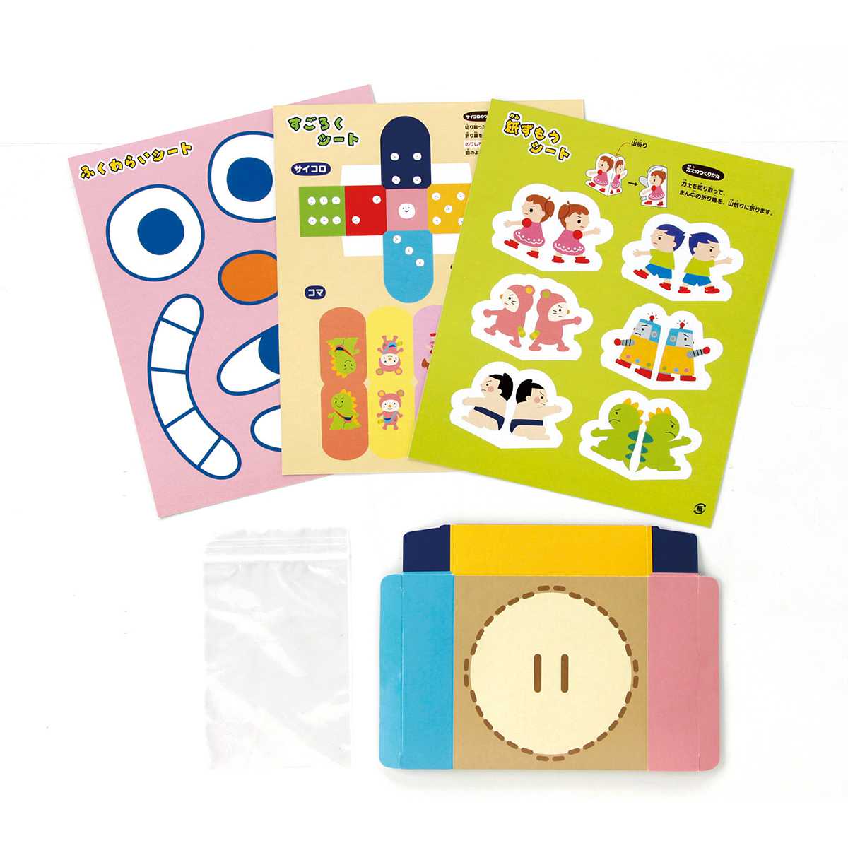 大ぼうけんすごろく、ぐるぐるすごろく、紙ずもう、ふくわらいの4種類のゲームが楽します。小さなお子さまにも理解しやすいゲームなので、ご家族やご親戚が集まった時、友達が集まった時など、みんなでワイワイ遊べるセットです。