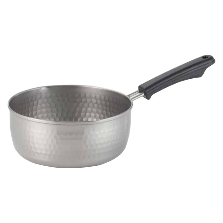 新潟県三条市で製造された雪平鍋です。3~4人分のお味噌汁や煮物作りにちょうどいいサイズです。耐蝕性に優れたステンレス製なので、丈夫でお手入れも簡単です。ガスコンロやIHをはじめとするさまざまな熱源に対応しています。