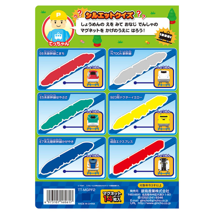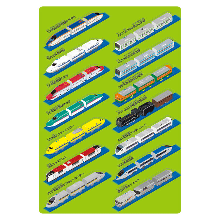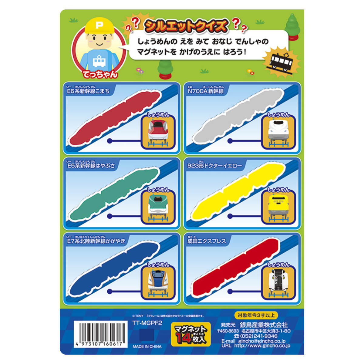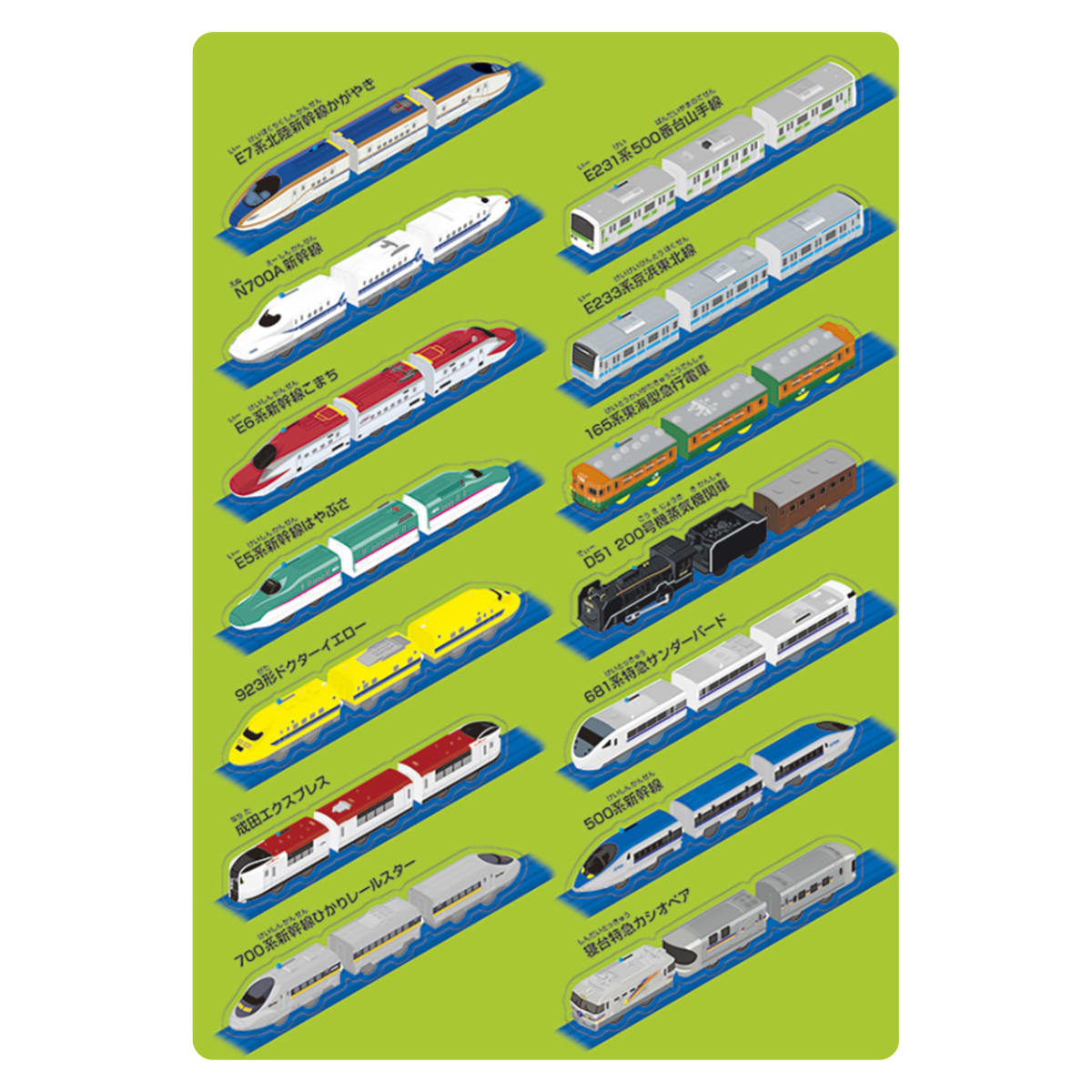 新幹線やドクターイエローなど、全部で14種類のプラレールのマグネットのセットです。遊びの中からいろんな事が学べる工夫がされてます。