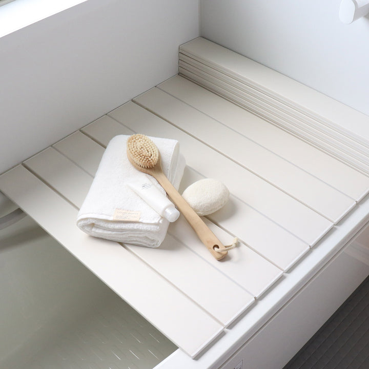 折り重ねてたためるスリム設計。省スペースに収納できるため、アパートなどの狭いお風呂にも最適です。