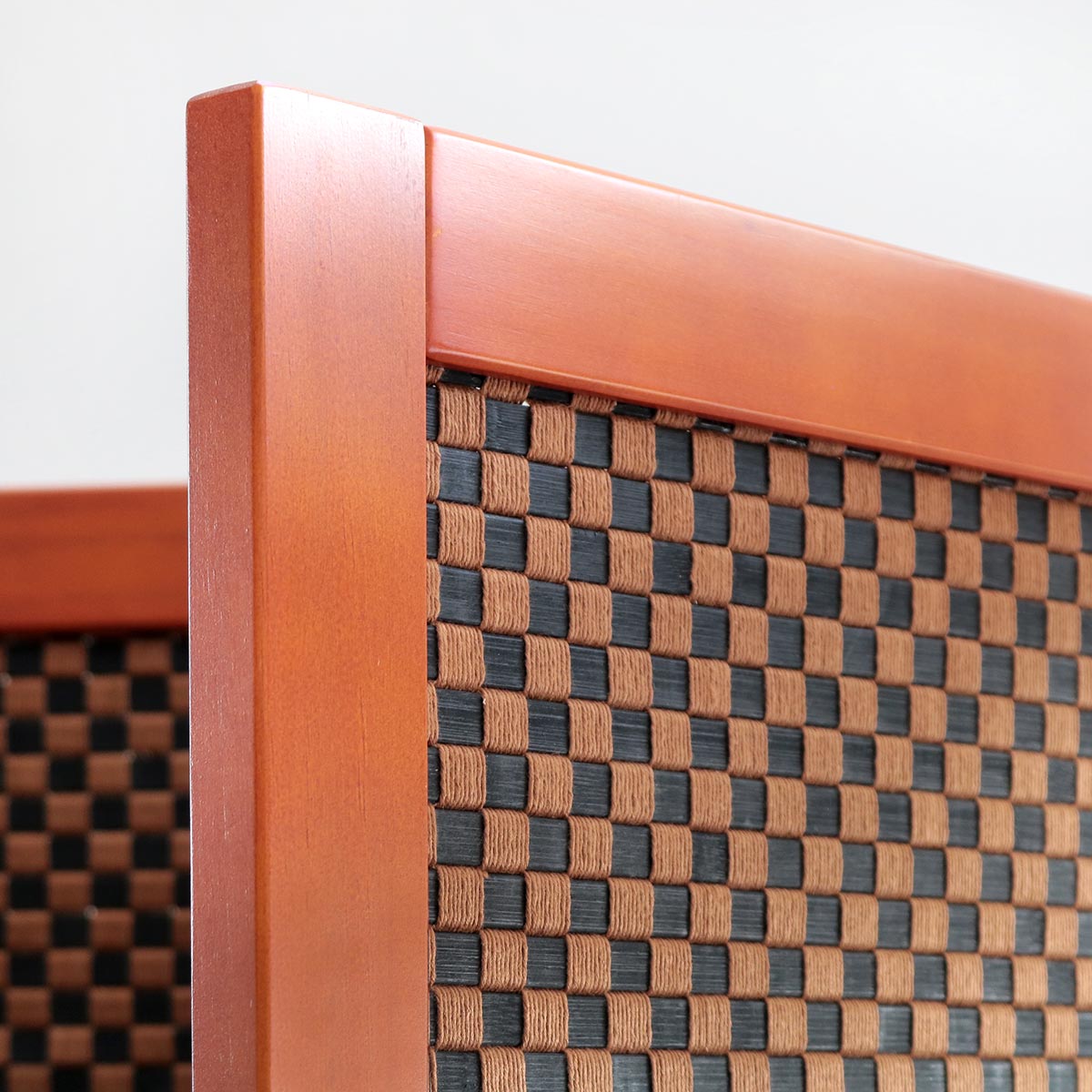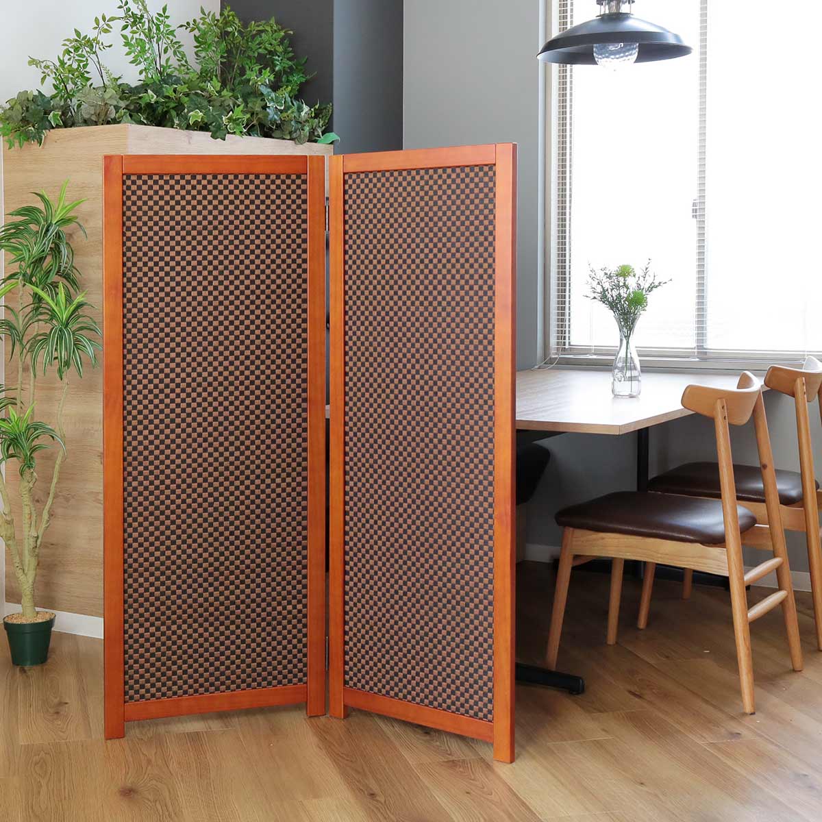 高級感あるブラウンの天然木の枠にデザイン性溢れる竹生地をはめ込んだ、国産仕上げの高級和風衝立です。