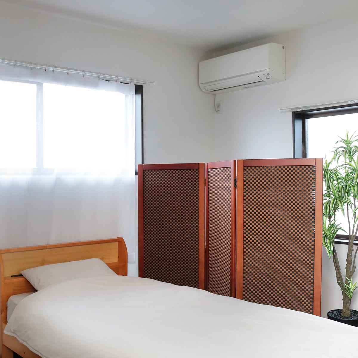 ダイニングとリビングの間仕切りや、ワンルームでの間仕切り、就寝時のエアコンの風除けなど様々な場面で活躍します。圧迫感がなくスペースを区切れるため、ワークスペースの確保にも最適です。