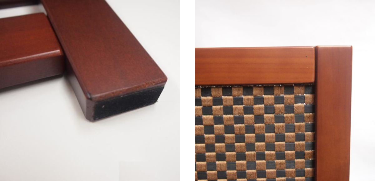 滑り止め付き フレーム底部分に滑り止めのフェルト付きです。床面への傷の防止にもなります。 |