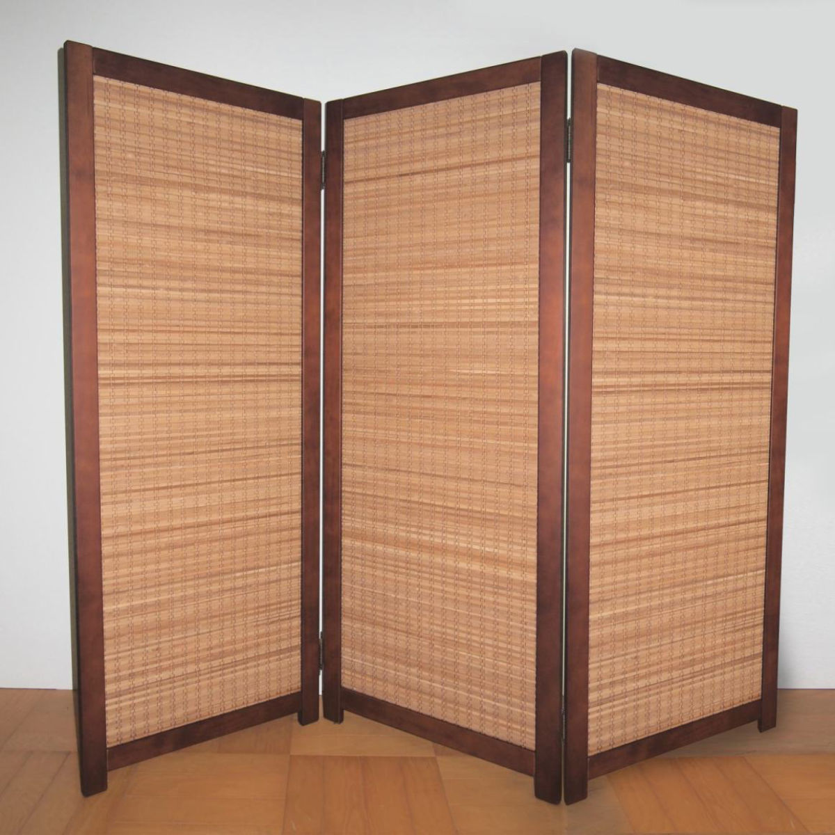 ●高級感あるブラウンの天然木の枠にデザイン性溢れる竹生地をはめ込んだ、国産仕上げの高級和風衝立です。