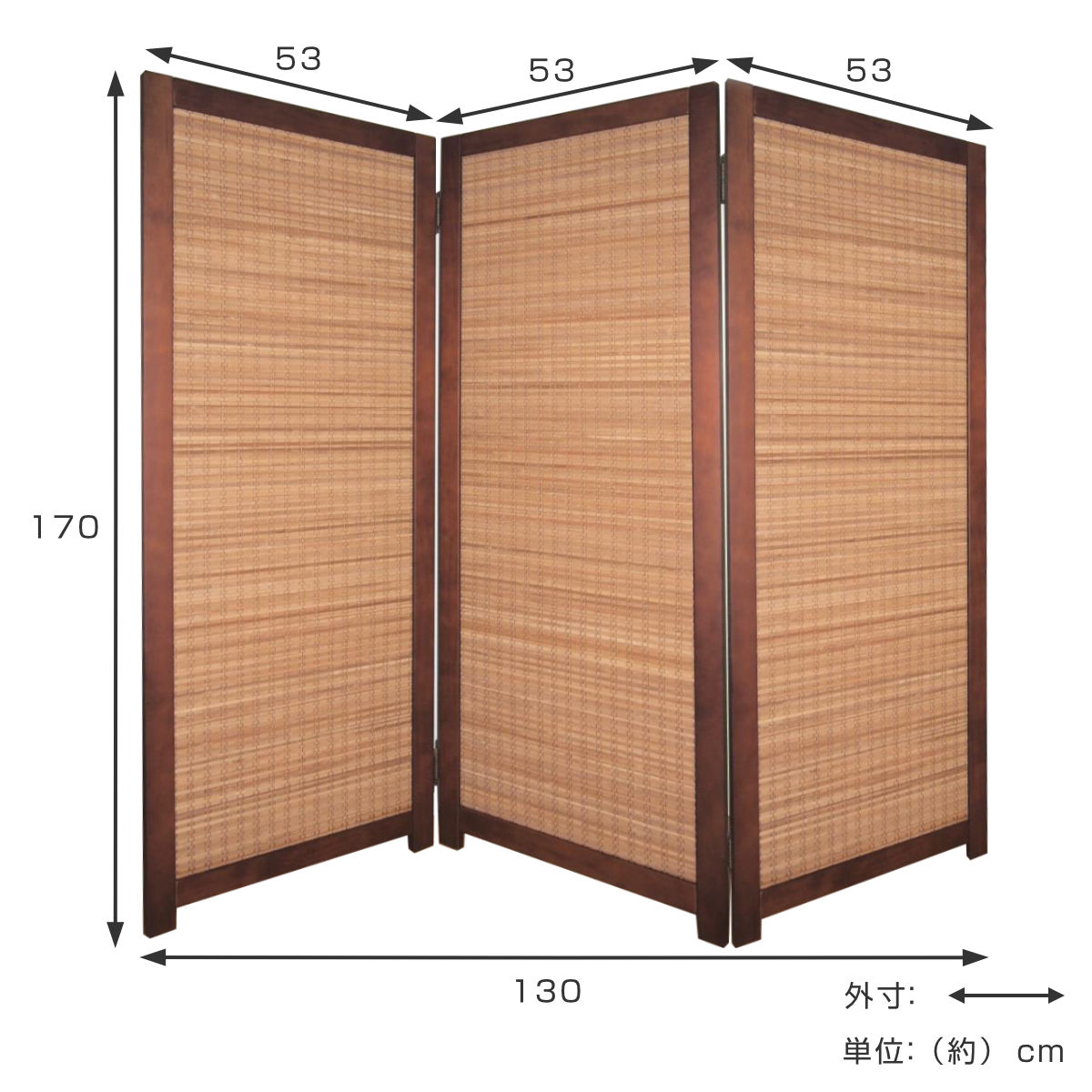 | サイズ | 1連あたり:約 幅53×高さ170(cm) 自立時:約 幅130cm×高さ170cm |