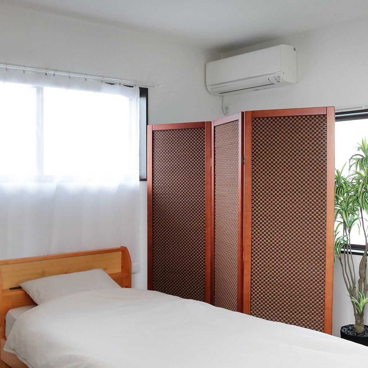 ダイニングとリビングの間仕切りや、ワンルームでの間仕切り、就寝時のエアコンの風除けなど様々な場面で活躍します。圧迫感がなくスペースを区切れるため、ワークスペースの確保にも最適です。