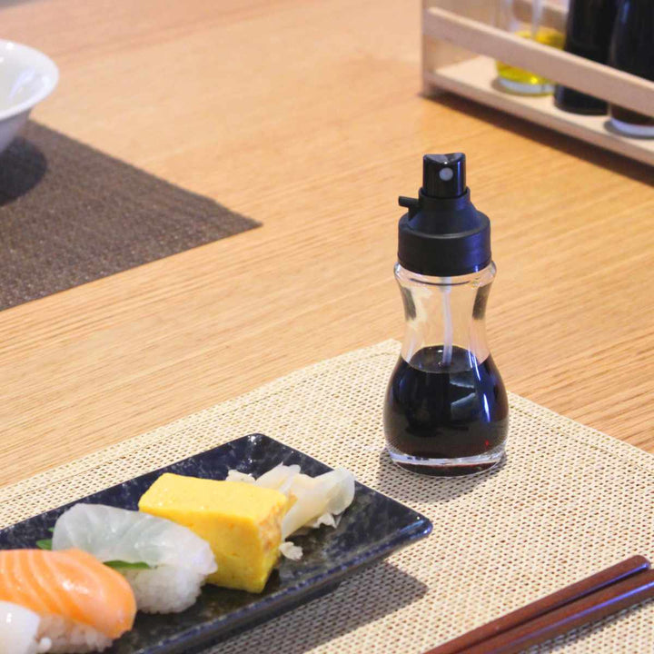 醤油をシュッと吹きかけたり、ポタっとたらしたり、2WAYで使い分けられる醤油差しです。ピンポイントで使いたい時はドリップ式でポタっと垂らし、まんべんなくかけたい時はシュッとひと吹きで広範囲に吹きかけられます。