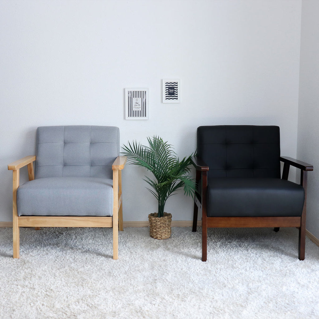| 材質 | 構造部材:天然木 表面加工:ウレタン塗装 張り材:合成皮革(ブラック)、ポリエステル・コットン(グレー) |