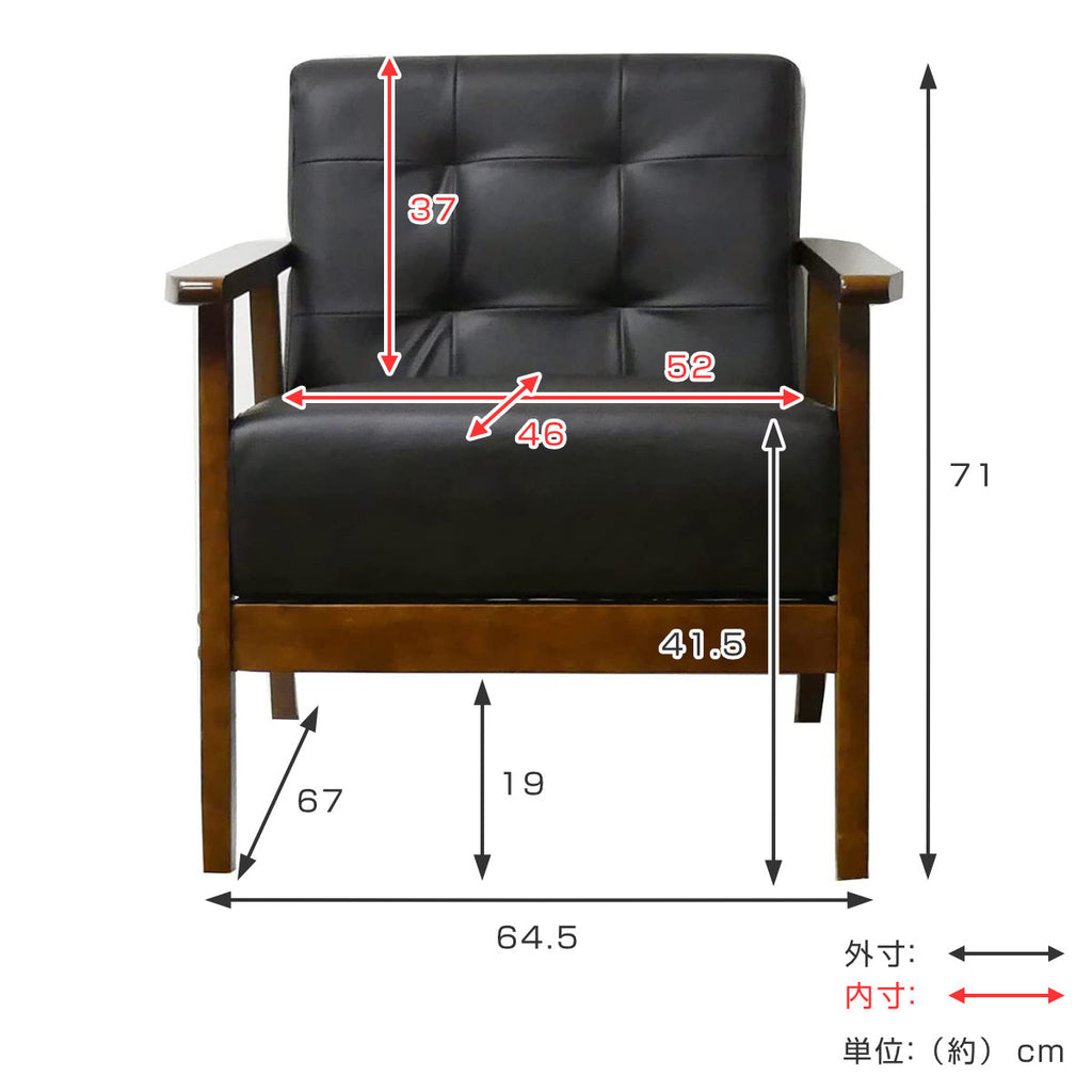 ソファ 一人掛け 幅64.5cm 天然木 肘掛け ファブリック お掃除ロボット対応