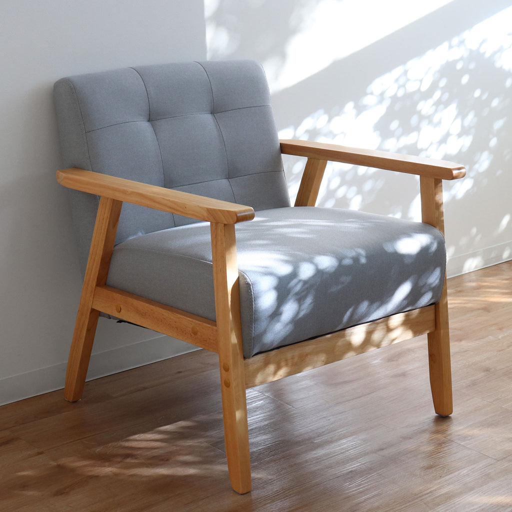 自分だけの空間をゆったりと過ごすことができる一人用のソファです。天然木のぬくもりを感じる木製フレームとシンプルなデザインはどんなお部屋にも合わせやすいです。コンパクトなサイズ感なので、スペースに限りがある空間や1人暮らしの方にもおすすめです。