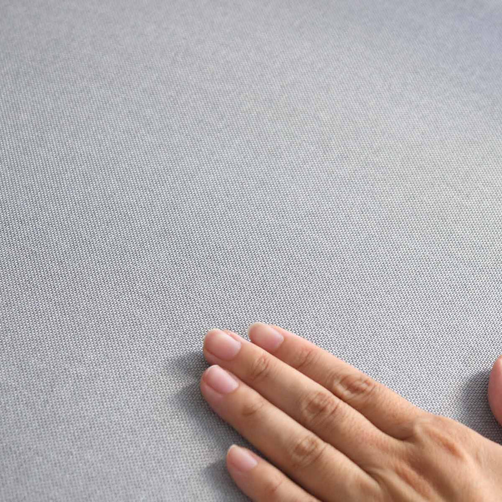 グレーの座面は手触りの良いファブリック生地になっています。通気性が良く、オールシーズン快適にお過ごしいただけます。