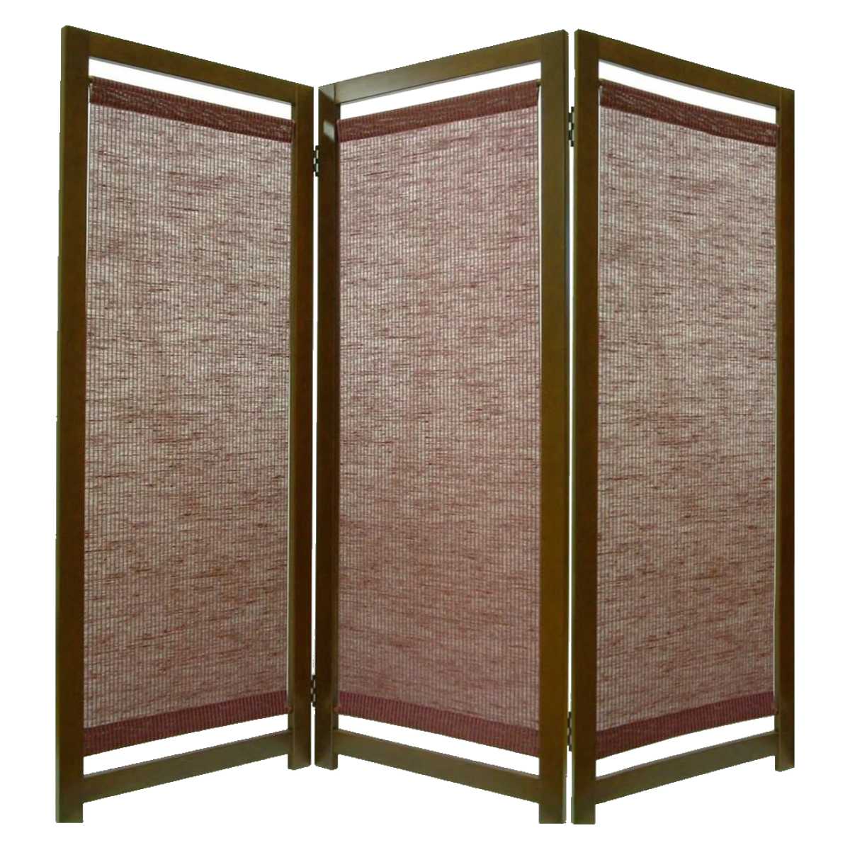 1枚の幅を広げて、3連で約130cmの場所での使用を可能にしました。枠は落ち着いたダークブラウンの天然木で、和室にも洋室にも馴染みやすく、お部屋の雰囲気を壊さずにお使いいただけます。生地は5色展開で、お好みに合わせて選んでいただけます。