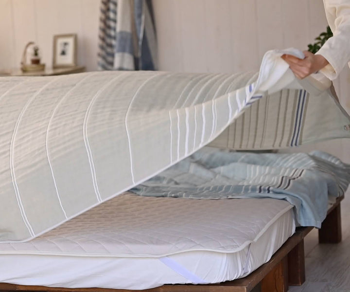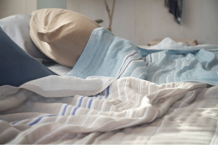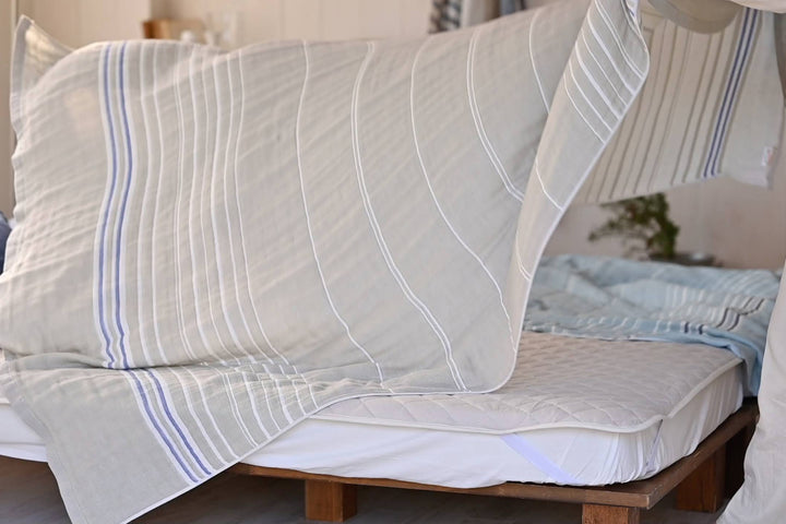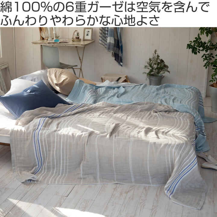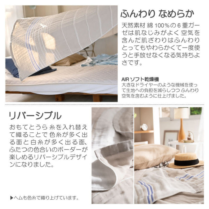天然素材の綿100%の6重ガーゼは肌なじみがよく、空気を含んだ肌ざわりはふんわりとってもやわらかくて一度使うと手放せなくなる気持ちよさです。