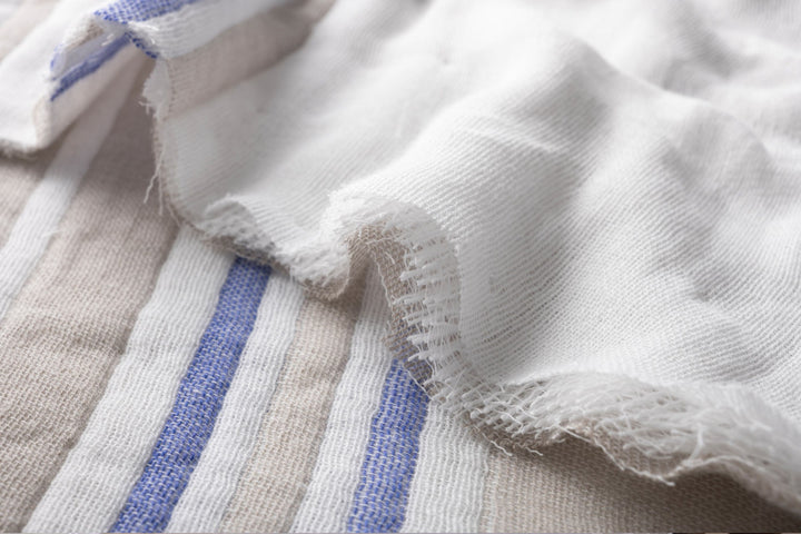 洗濯機でお洗濯可能です。ガーゼは乾きも早く、いつも清潔にお使いいただけます。異なる織りのガーゼを6層、丁寧に織り上げているので長く使い込んでも中の層がヨレることなく、やさしいふっくら感が増していきます。
