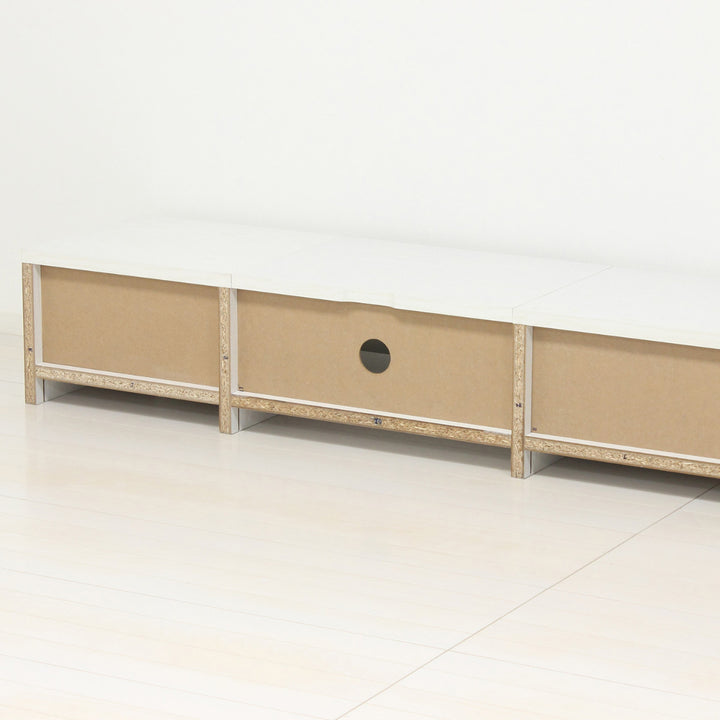 オープン部背面には配線穴があり、デッキやルータの配線がごちゃつかず片付いた印象になります。