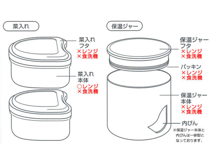 | 内容量 | 1個 (保温ジャー、菜入れ×2個、ランチバッグ、箸、箸箱) |