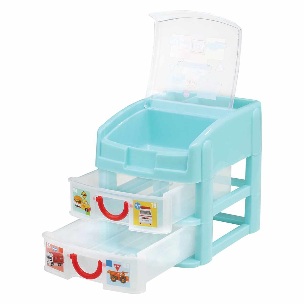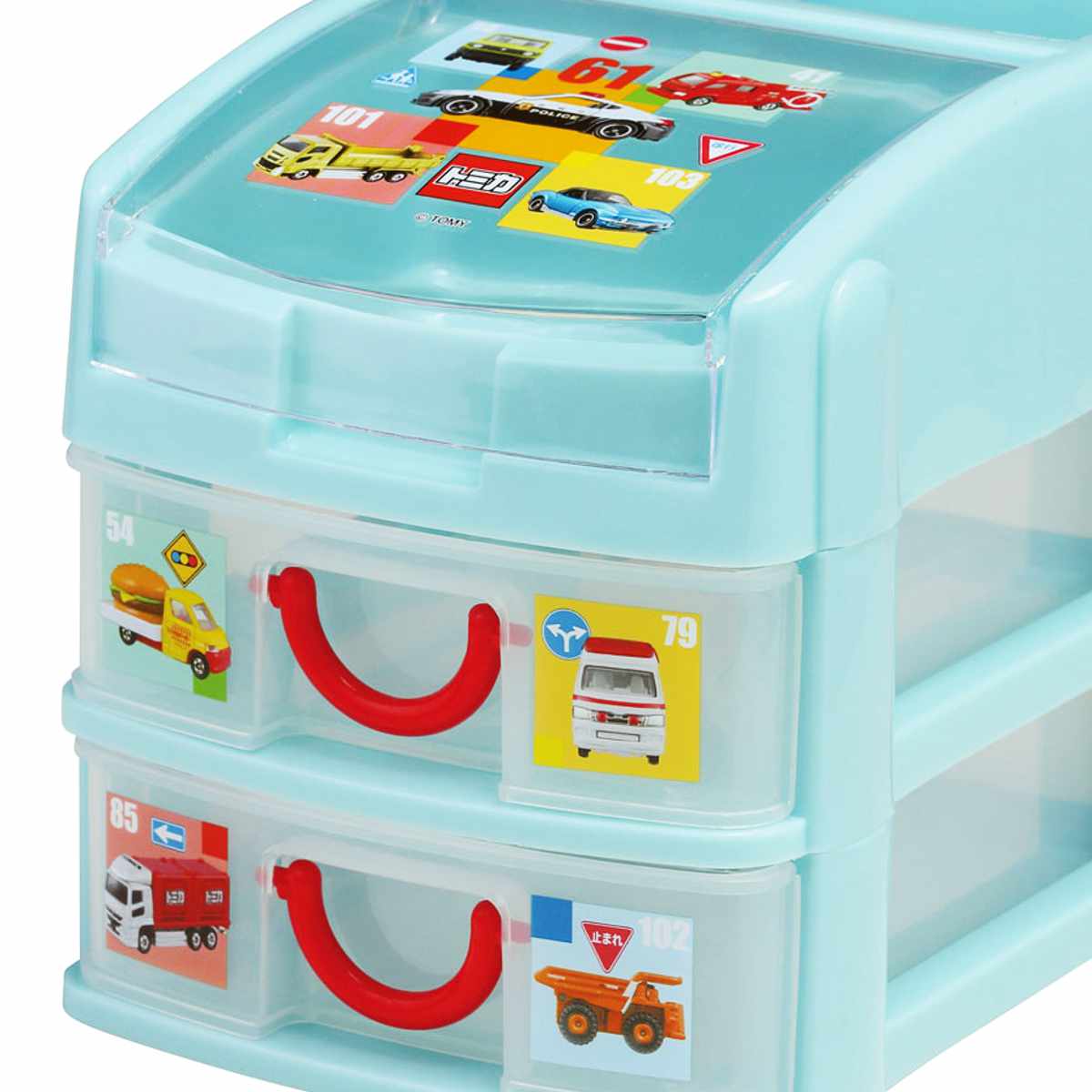トミカのイラストが上部と引出しそれぞれにプリントされていて、見ているだけで楽しいデザインです。