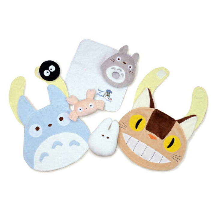 | 内容量 | セット内容:フェイススタイ(中トトロ、ネコバス)、ガラガラ(大トトロ、メイガニ、まっくろくろすけ)、小トトロ笛入り:各1個、ミニタオル:1枚 |