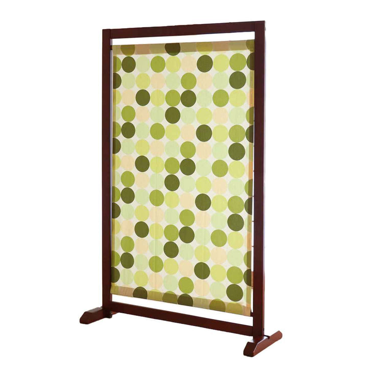 高級感ある天然木の枠に北欧テイストの生地をはめ込んだ、国産仕上げの衝立です。生地は、お洒落なドット柄のカーテン生地を使用しています。ピンクとグリーンの2色展開で、和室にも洋室にも馴染みやすいデザインです。