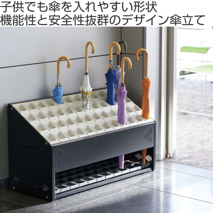 手前にフロントパネルが張られているので、傘を入れた際もスッキリとまとまった印象を与えてくれます。機能性と安全性に配慮しており、子どもから大人まで傘が取り入れしやすくなっています。