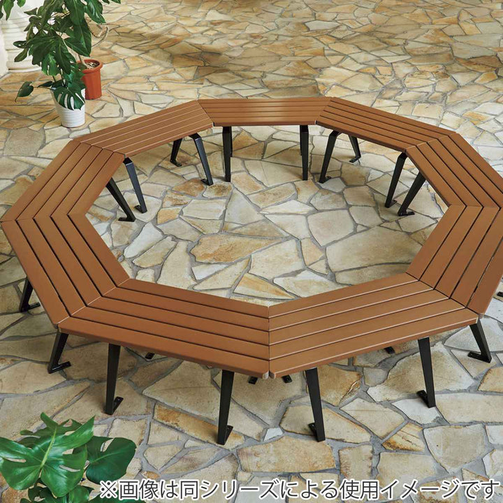 ベンチの座部が平行四辺形(ひし形 固定左)の形をしているので、複数組み合わせることでサークルやS字など、自由で幾何学的なレイアウトが可能になります。
