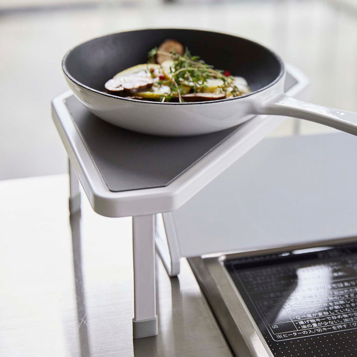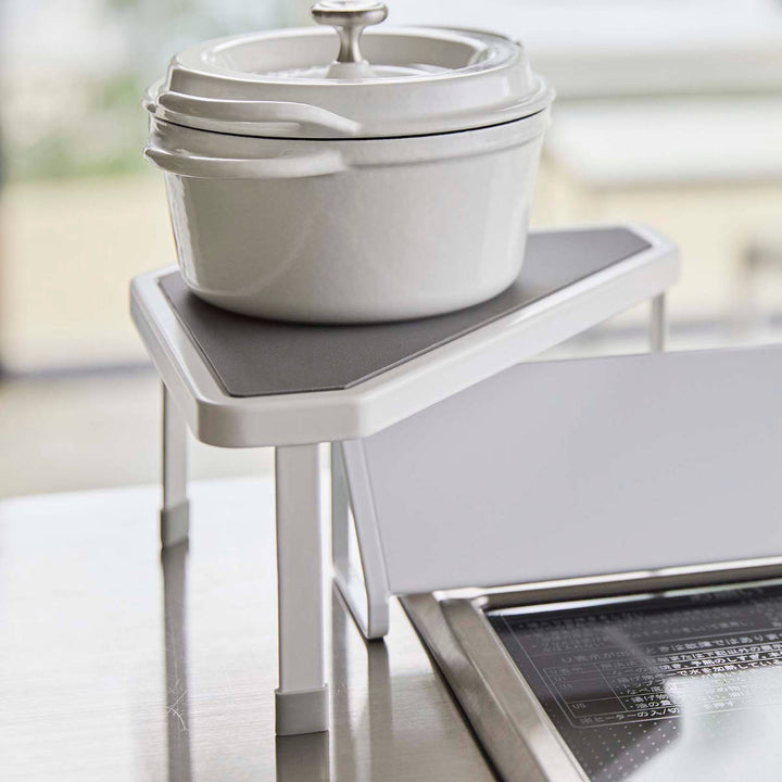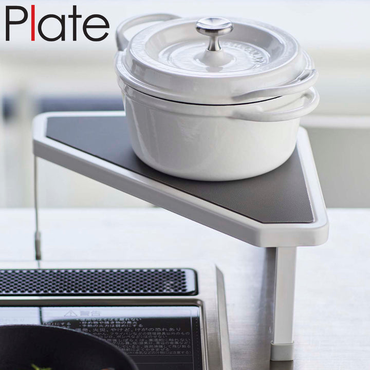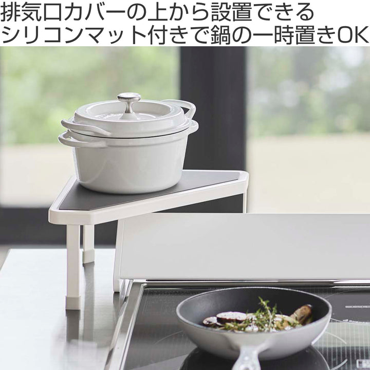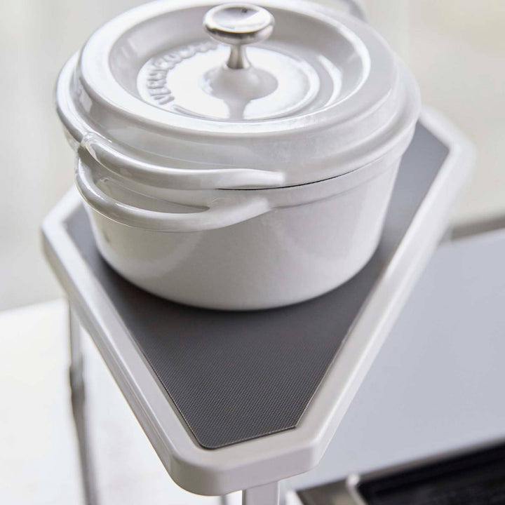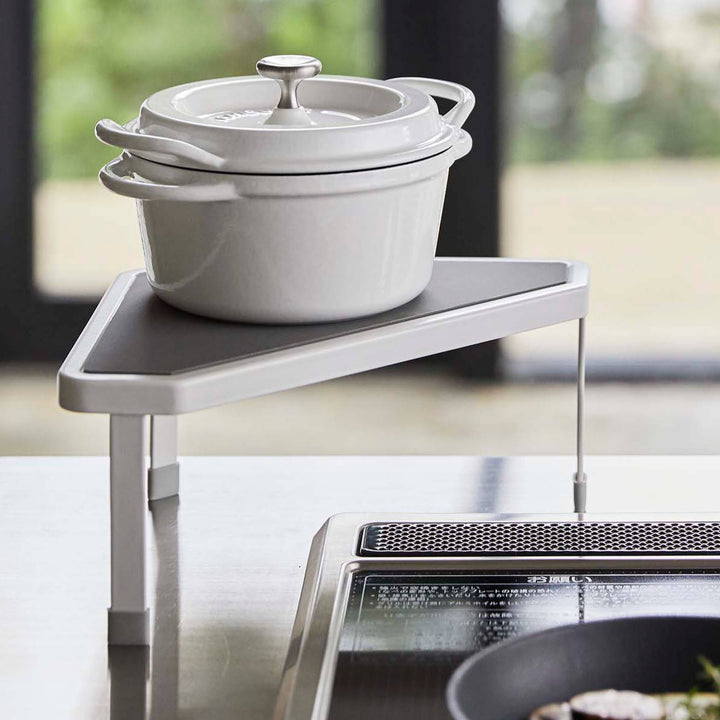 デッドスペースになりがちなコンロ奥のコーナスペースを調理器具の一時置きや、よく使う調味料の定位置にできます。本体は約 500gと軽いのでお掃除や移動の際も簡単に動かせます。