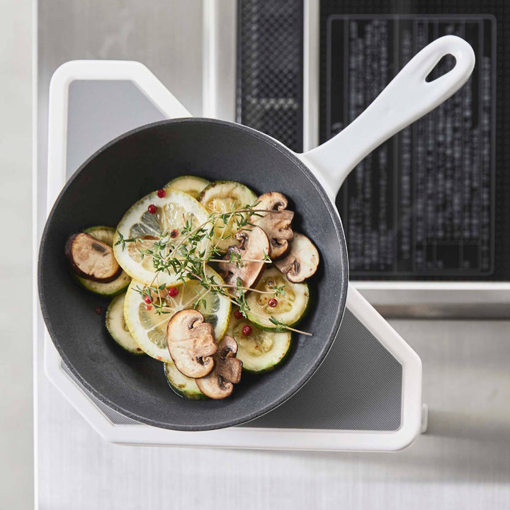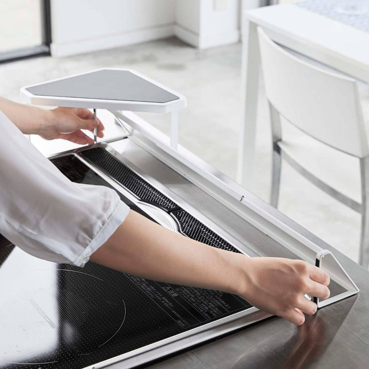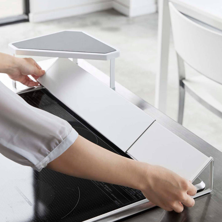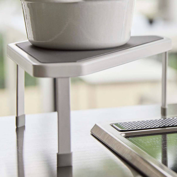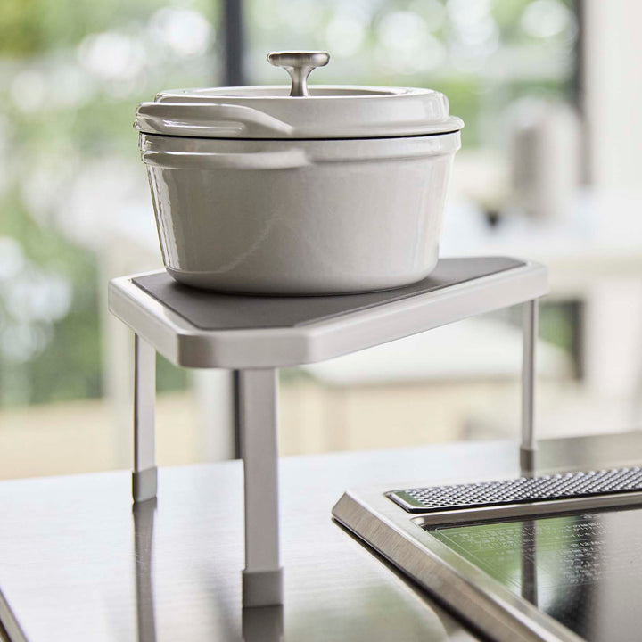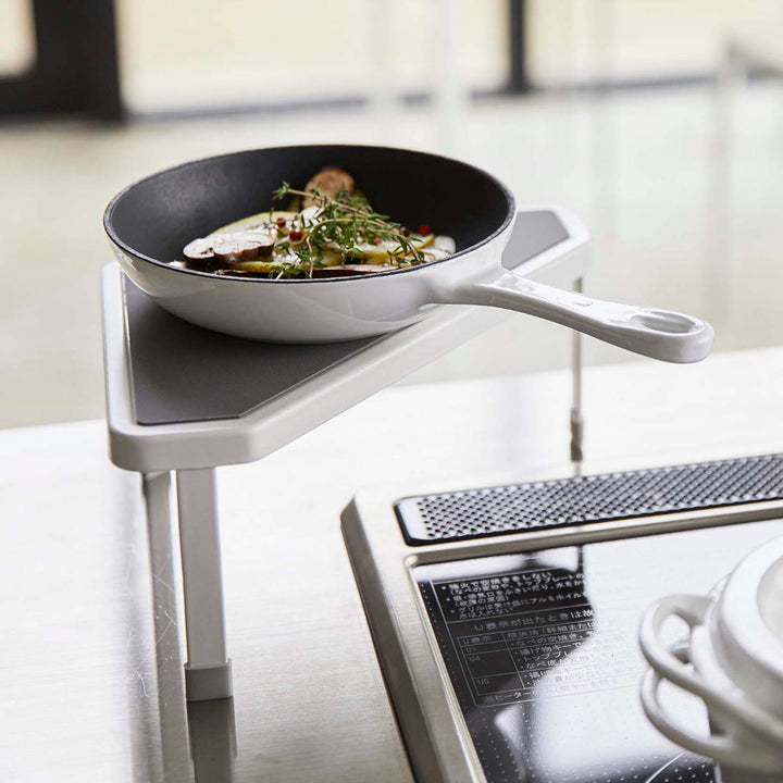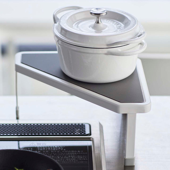 デッドスペースになりがちなコンロ奥のコーナスペースを調理器具の一時置きや、よく使う調味料の定位置にできます。本体は約 500gと軽いのでお掃除や移動の際も簡単に動かせます。