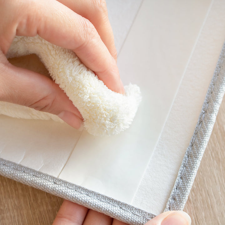 普段のお手入れは、よく絞った雑巾やウエットシートでの水拭きで充分です。お洗濯不要なので天候に左右されたり、干す場所を確保せずにお使いいただけます。お子様が砂や土を持ち帰ってしまってもサッと簡単にお手入れできます。