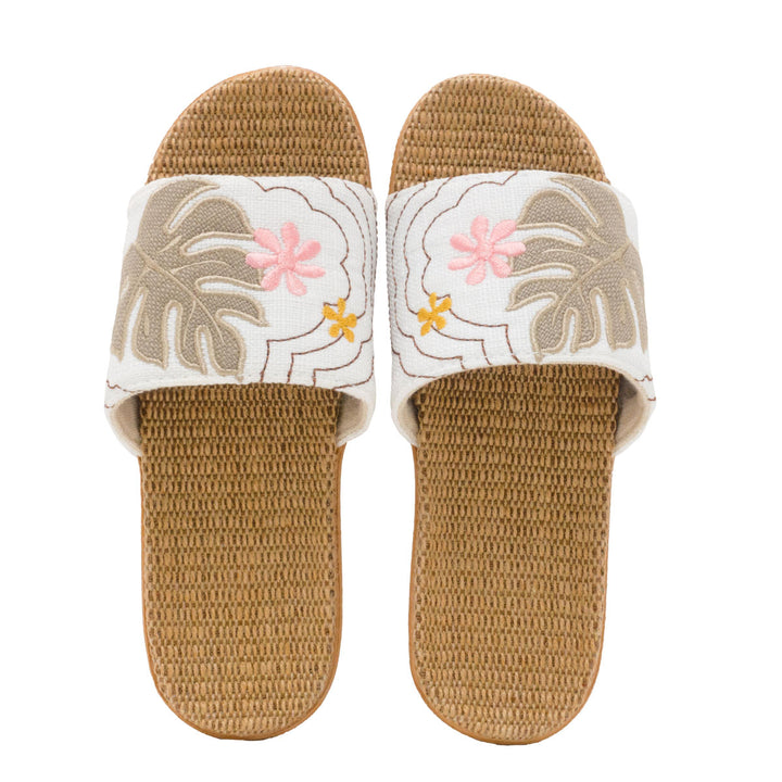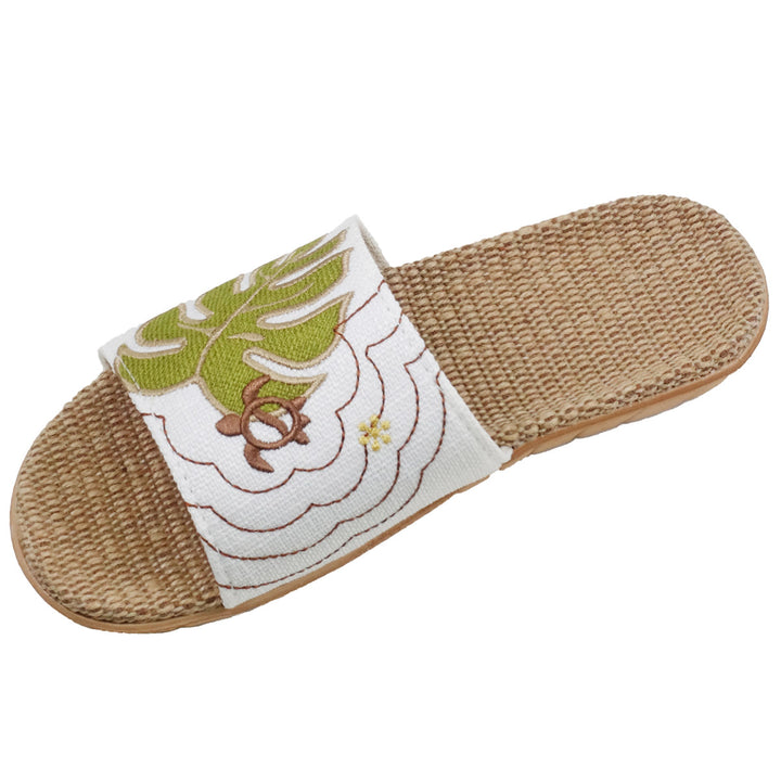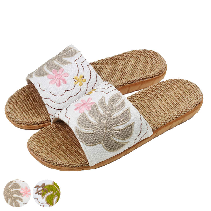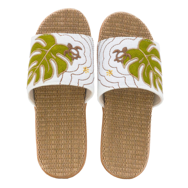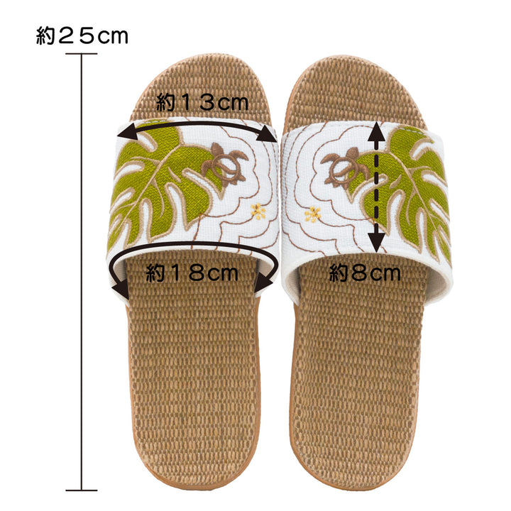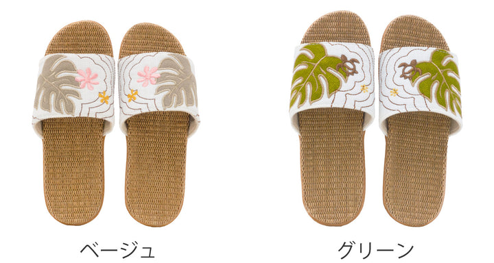 南国感あふれるハワイアンキルト風デザインです。また素足で履いても蒸れにくく、暑い季節も快適に過ごせます。
