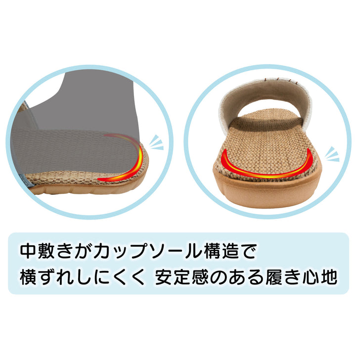 ●肌触りの良いジュート素材が魅力の、家の中で履けるサンダル風スリッパです。
