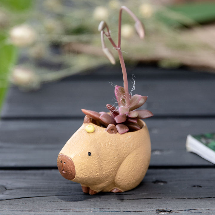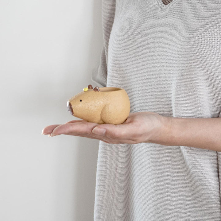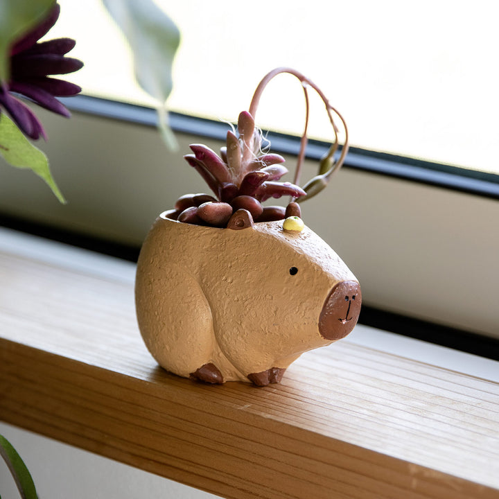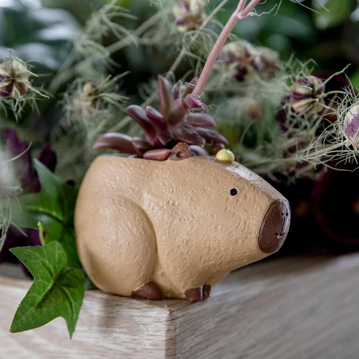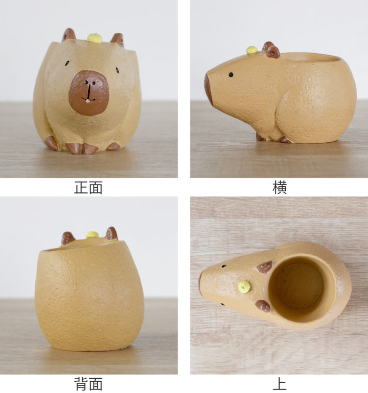 お庭を楽しい空間に演出してくれる珍獣・カピバラのプランターです。玄関先に置いてゲストのお出迎えにもぴったりです。ぜひ、シリーズでお買い求めください。