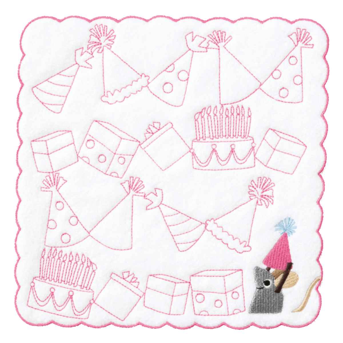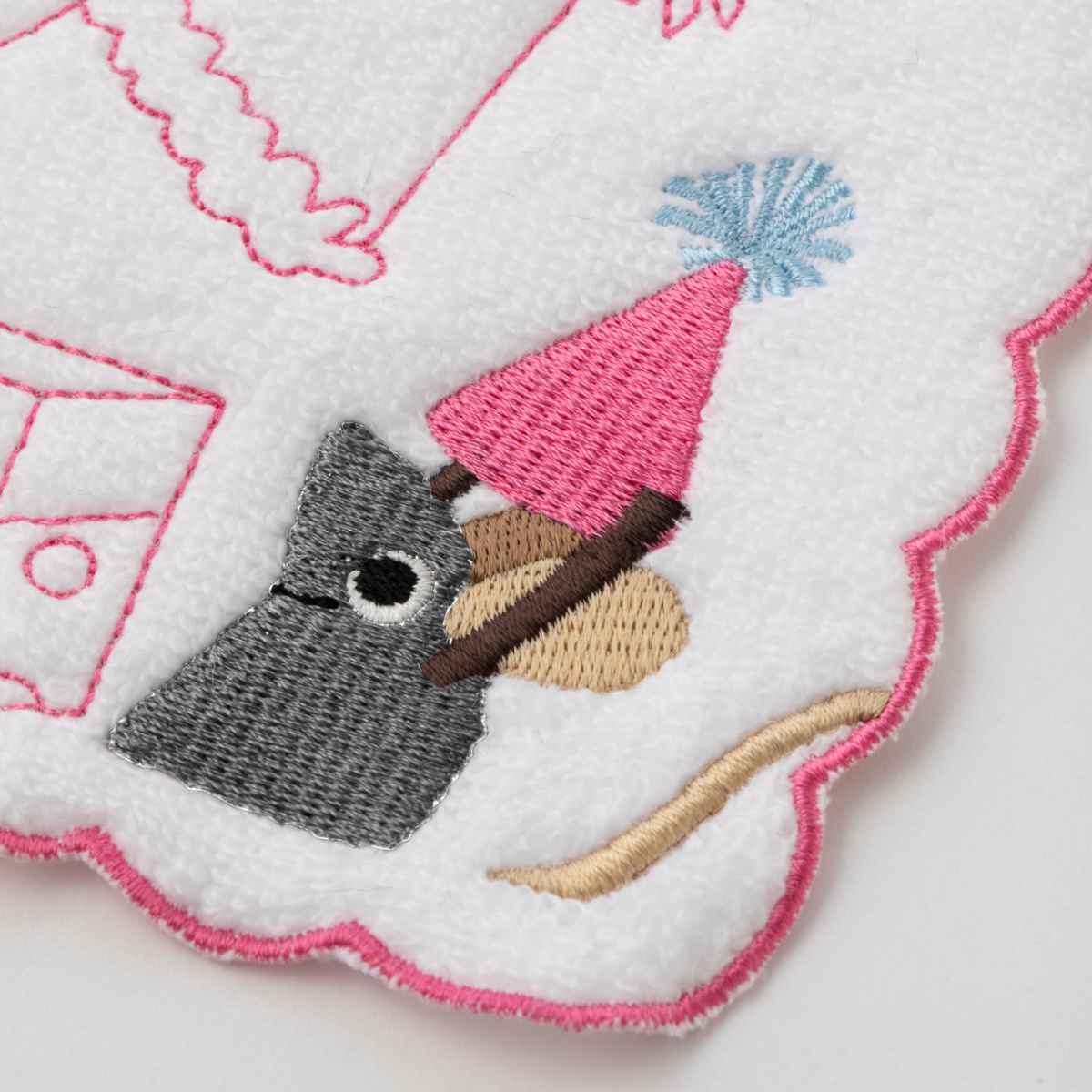 絵本からそのまま出てきたような、可愛いフレデリックがデザインされたミニタオルです。フチの丸いカタチとキャラクターの刺繍がポイントです。