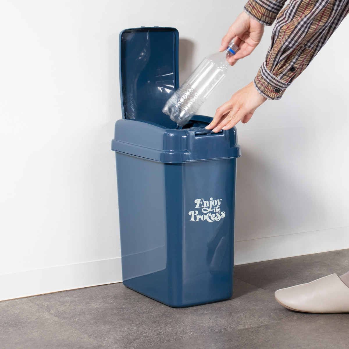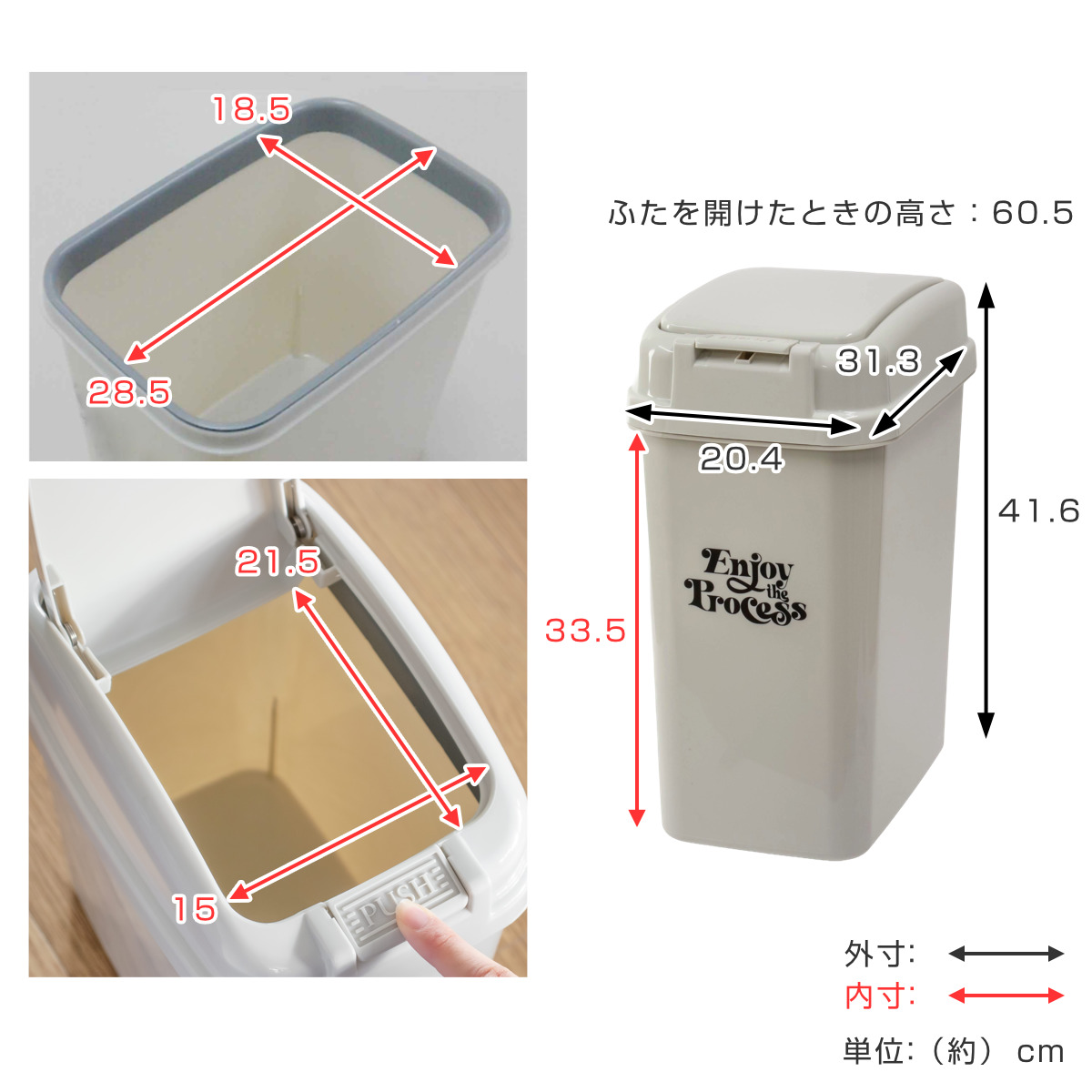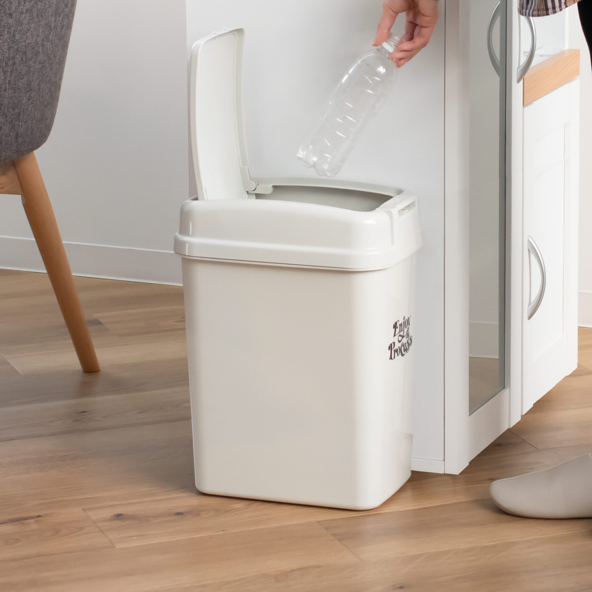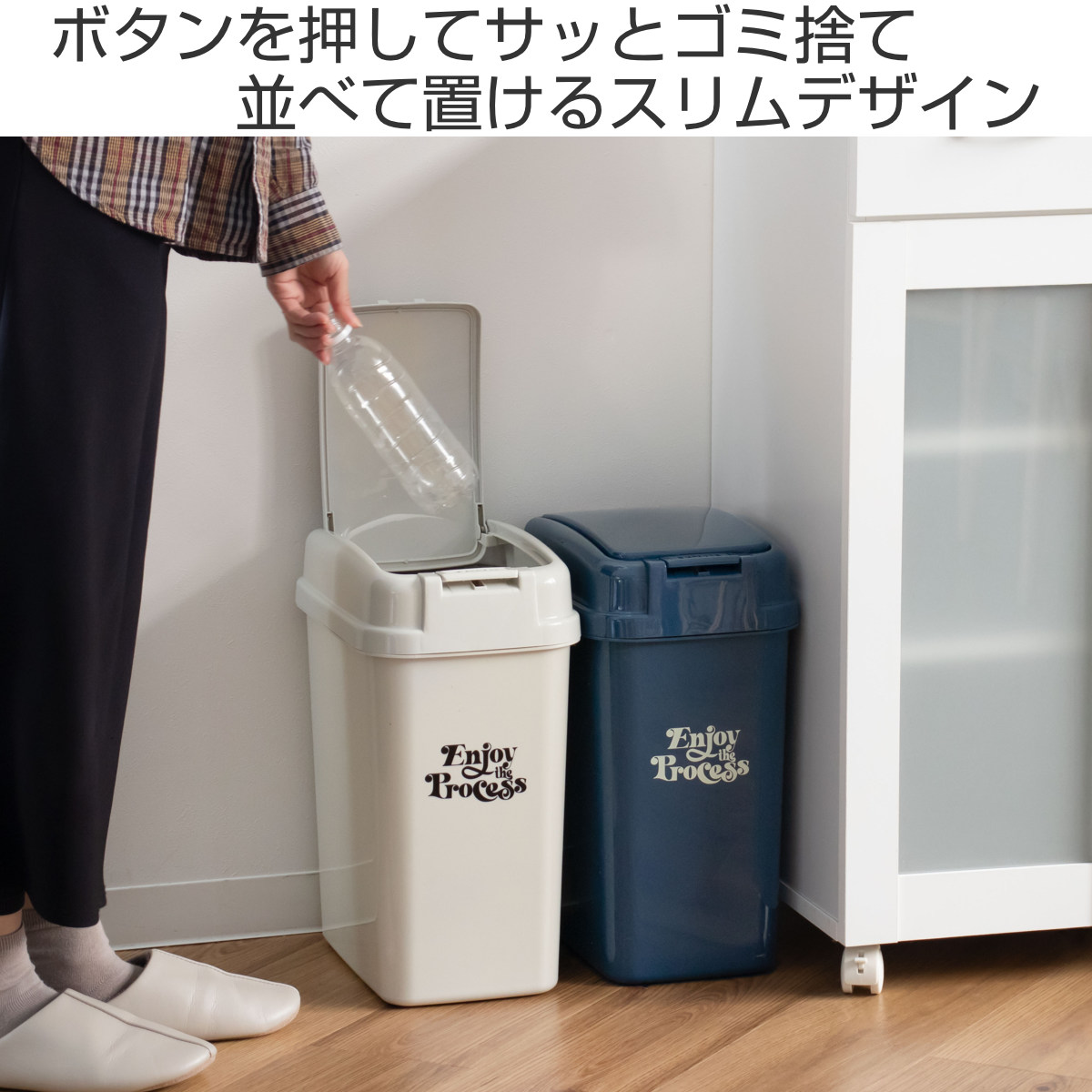 押すだけで開くワンプッシュ式のゴミ箱 18L