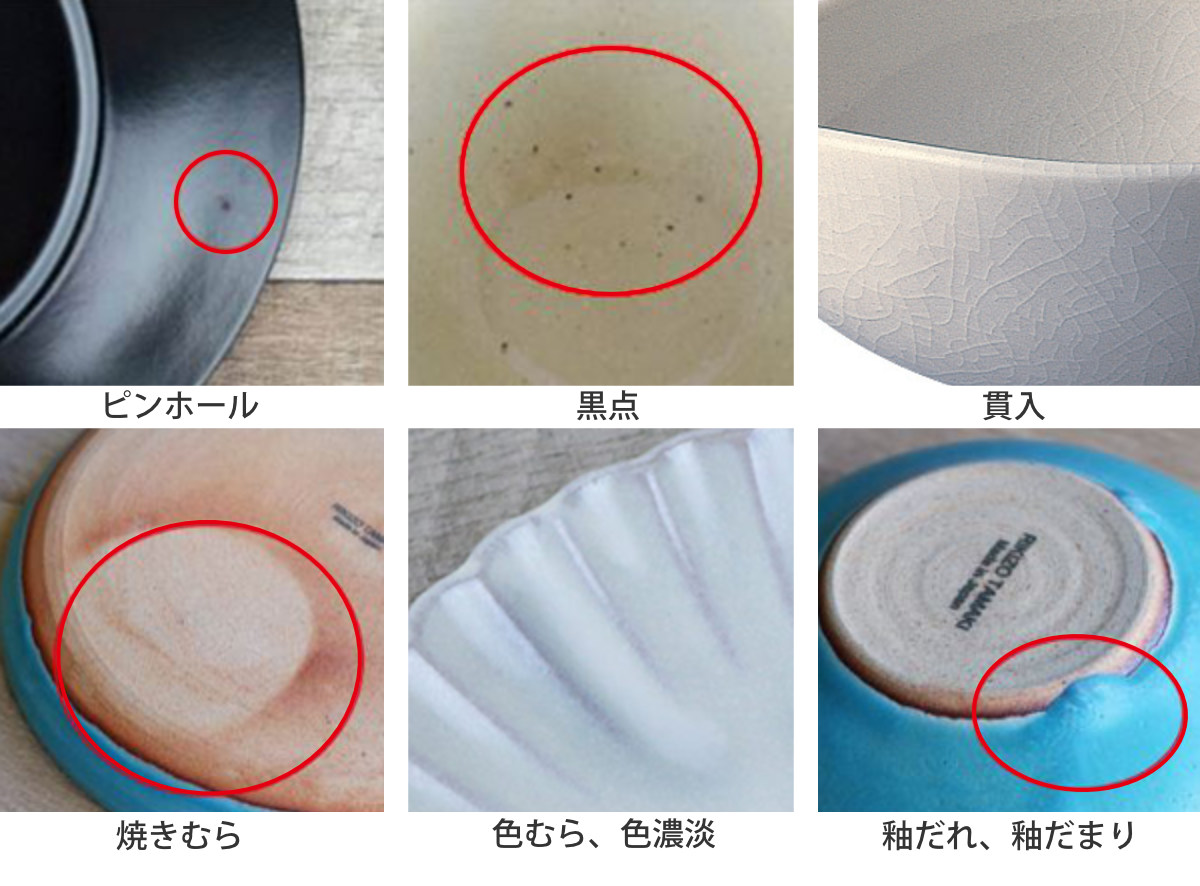 原料や製造方法により、上記のような特性がみられる場合があります。ひとつひとつのうつわの持つ個性、温かみある風合いとしてお楽しみいただければ幸いです。