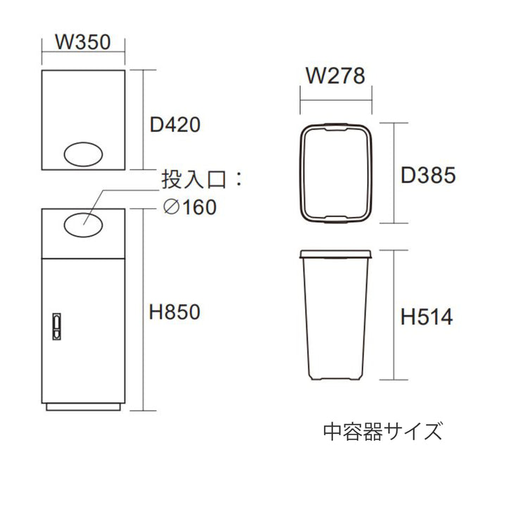 | サイズ | 約 幅35×奥行42×高さ85(cm) 投入口/約 直径16cm 中容器/約 幅27.8×奥行38.5×高さ51.4(cm) |
