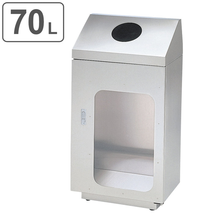 【法人限定】 屋内用ゴミ箱 業務用ダストボックス 70L 窓付 幅50cm PETボトル用タイプ リサイクルトラッシュ ステンレスヘアライン仕上