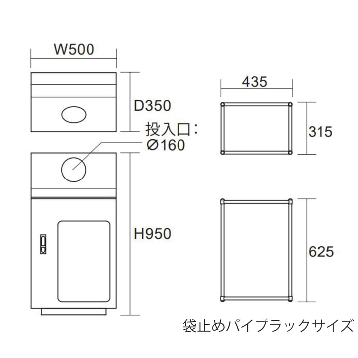 | 成分 | 本体:ステンレスヘアライン仕上 窓:PET樹脂 袋止めパイプラック材質 パイプ:塩化ビニール(直径18) ジョイント・ジョイントキャップ:ABS樹脂 |