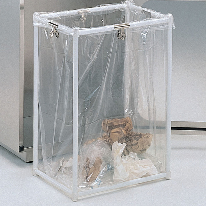 リサイクルトラッシュ窓付きボックスには袋止めパイプラックとクリップが付属しています。袋止めパイプラックには、約70Lの袋が付けられます。