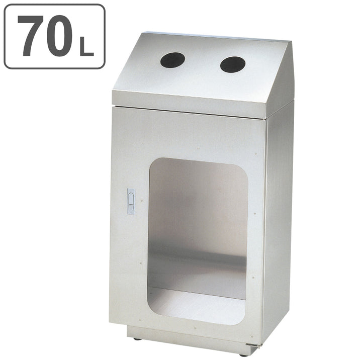 【法人限定】 屋内用ゴミ箱 業務用ダストボックス 70L 窓付 幅50cm ビン・カン用タイプ リサイクルトラッシュ ステンレスヘアライン仕上