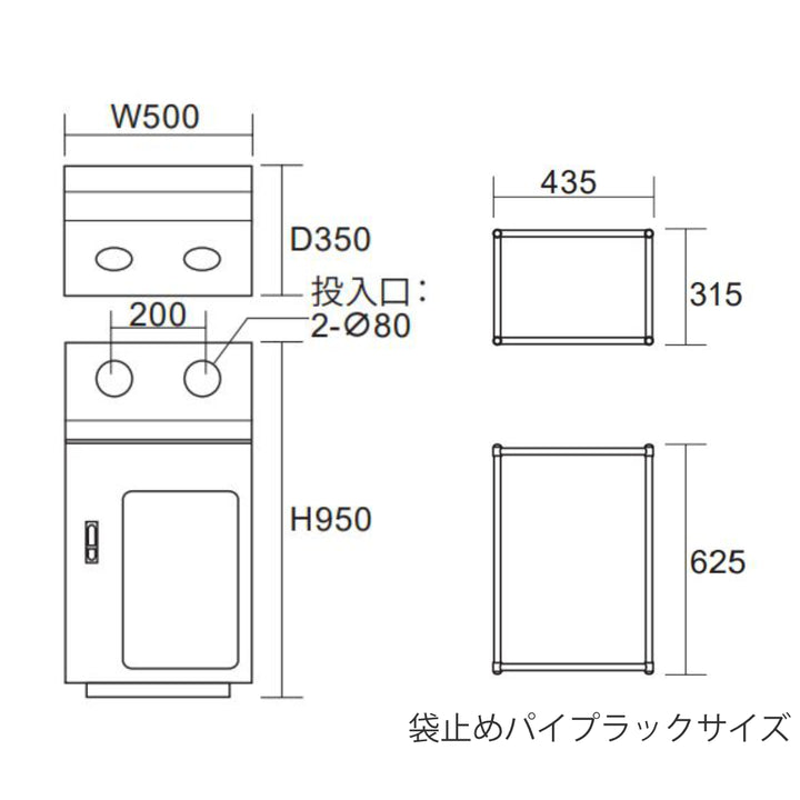 | 成分 | 本体:ステンレスヘアライン仕上 窓:PET樹脂 袋止めパイプラック材質 パイプ:塩化ビニール(直径18) ジョイント・ジョイントキャップ:ABS樹脂 |