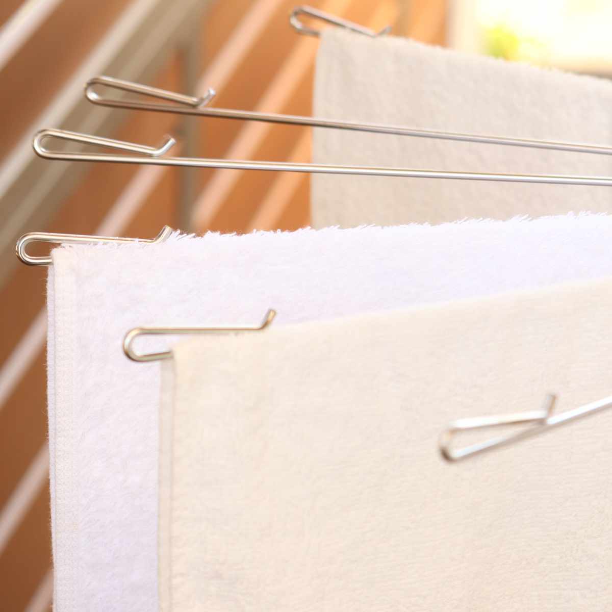 ストッパー付きフックなので、強い風が吹いても、物干し竿から落ちる心配はありません。